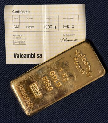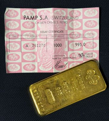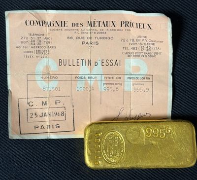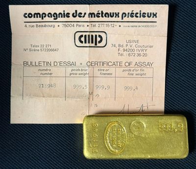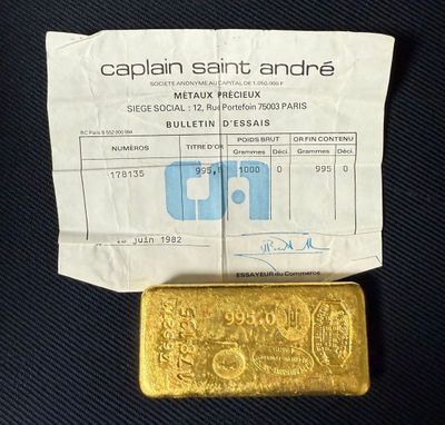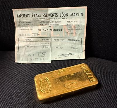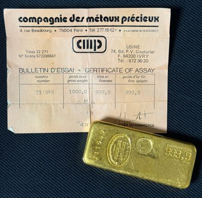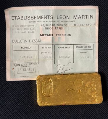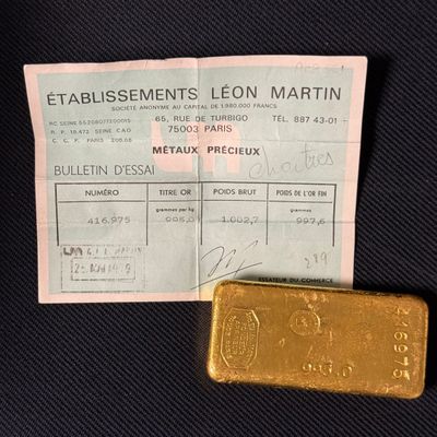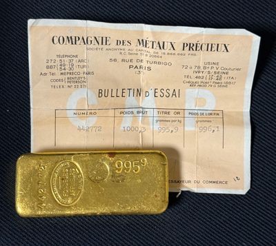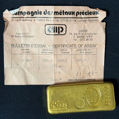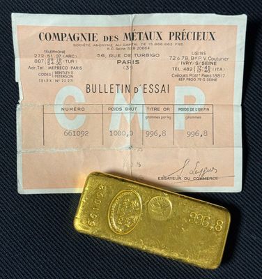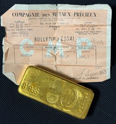 PAS DE LIVE Lingot d'or, numéroté 178135 Bulletin d'essai Ca…