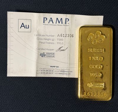 PAS DE LIVE Lingot d'or, numéroté A259051.