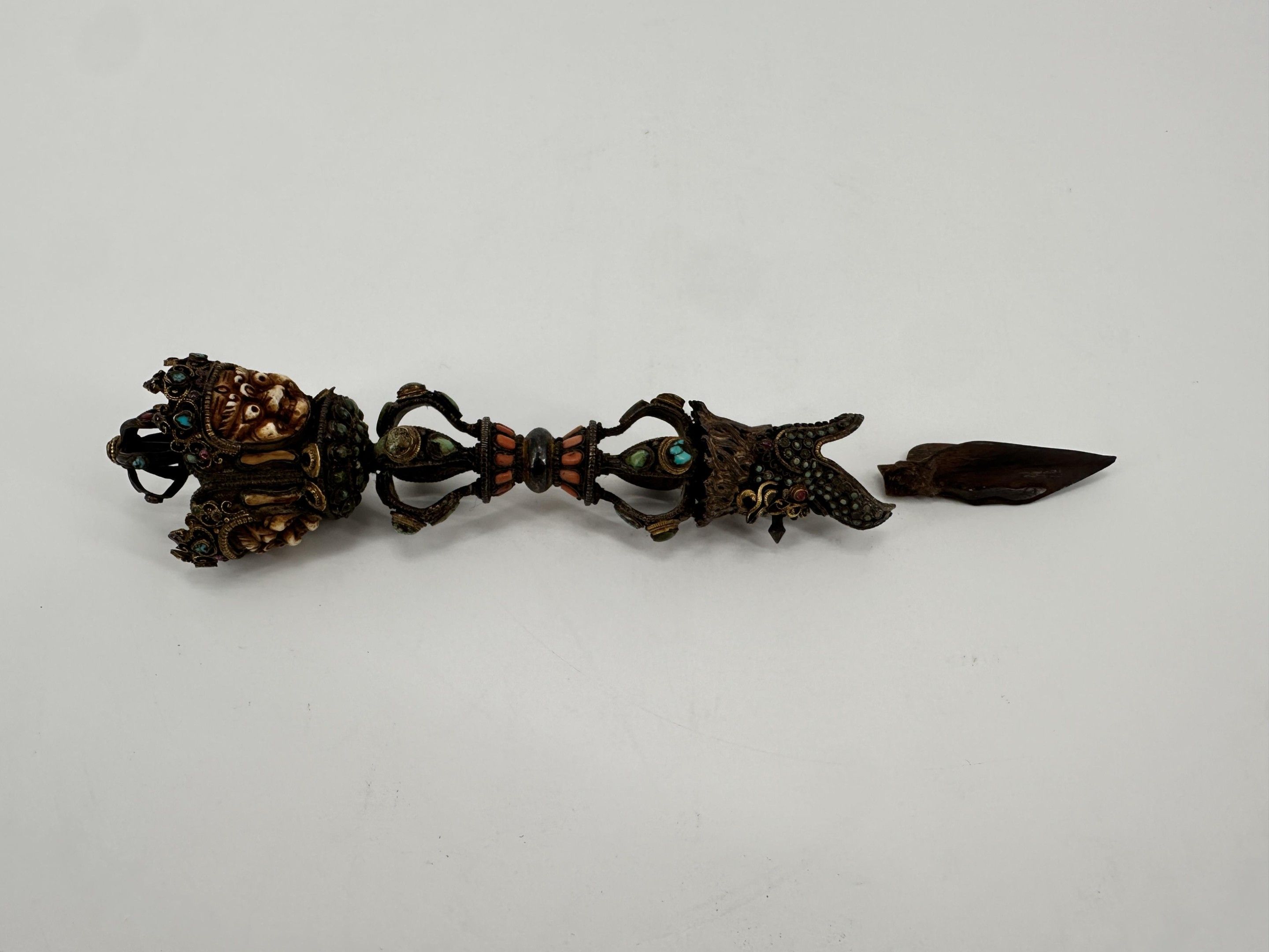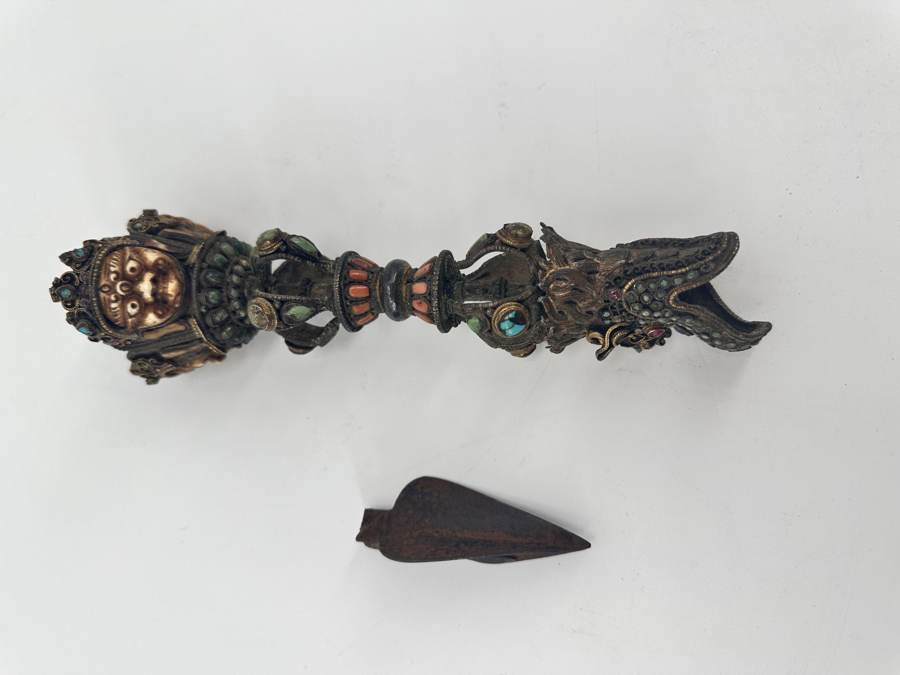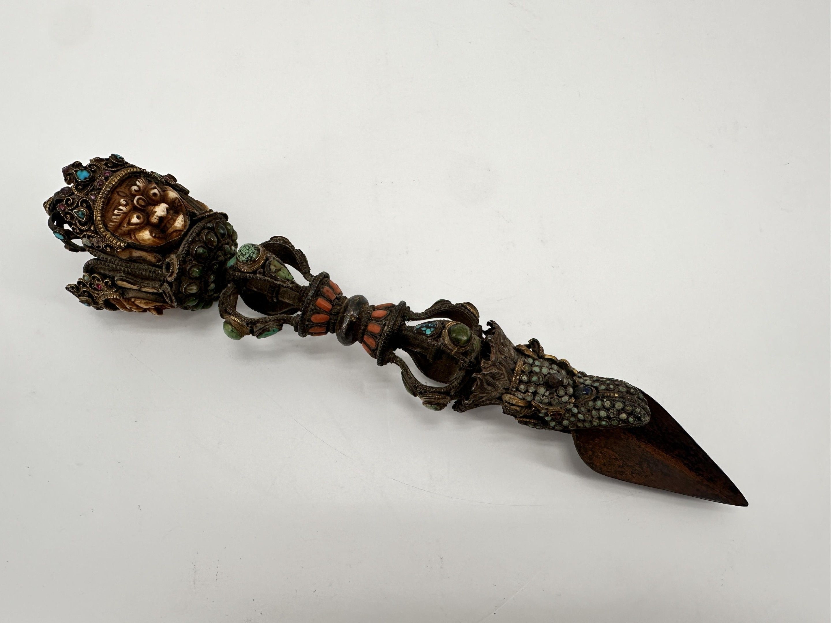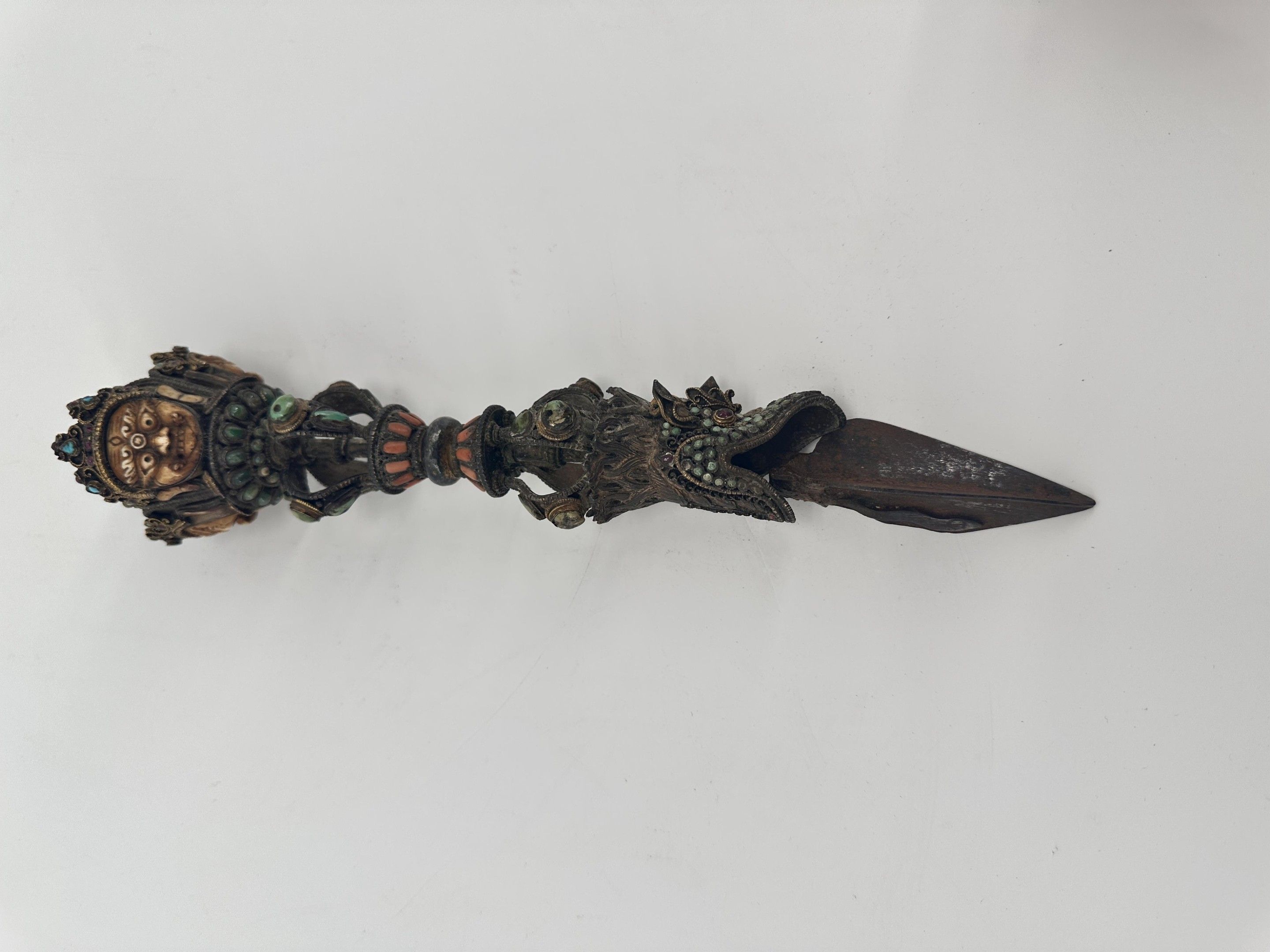 Phurba ou poignard cérémoniel en cuivre dont la lame est cra…
