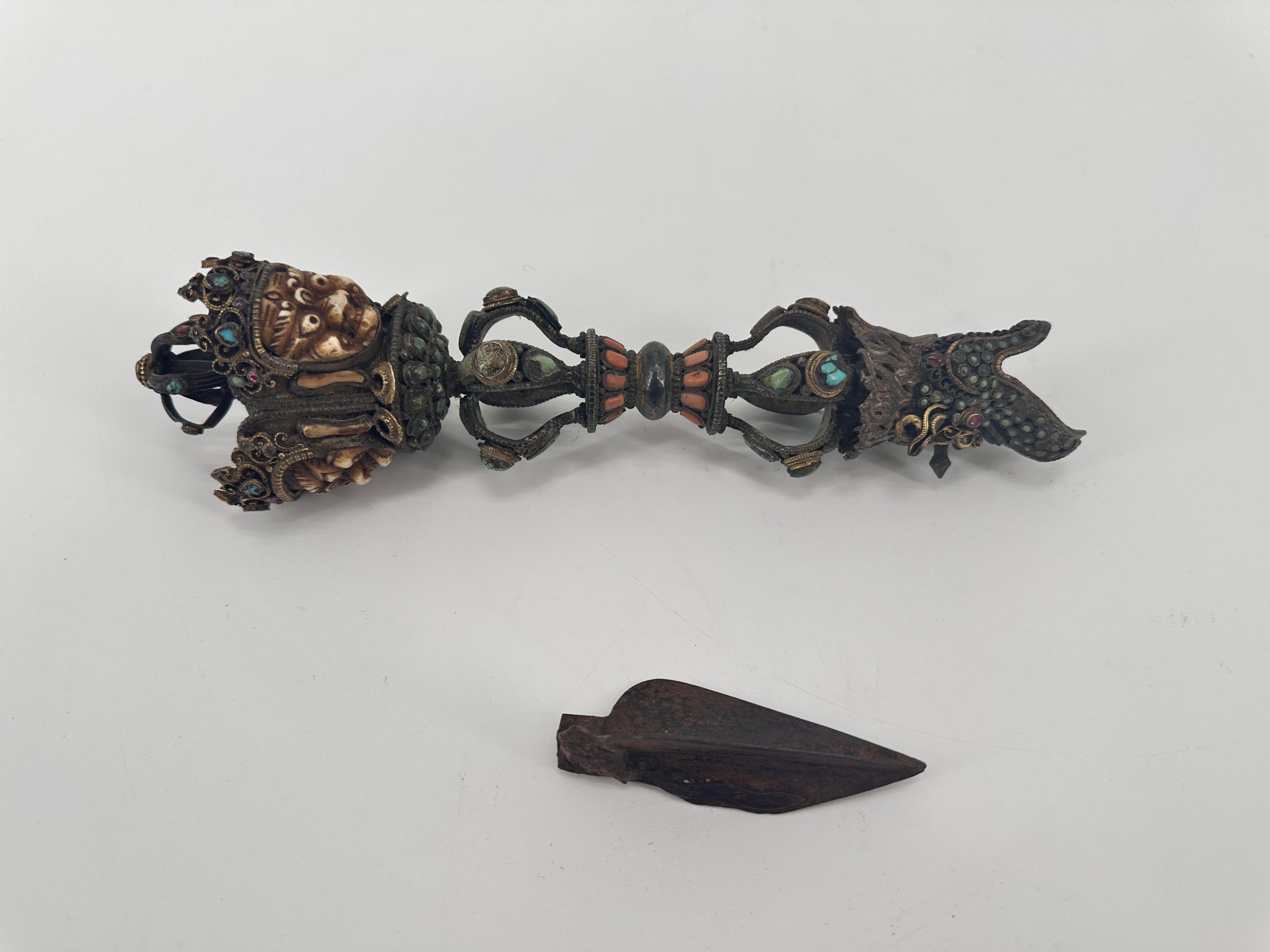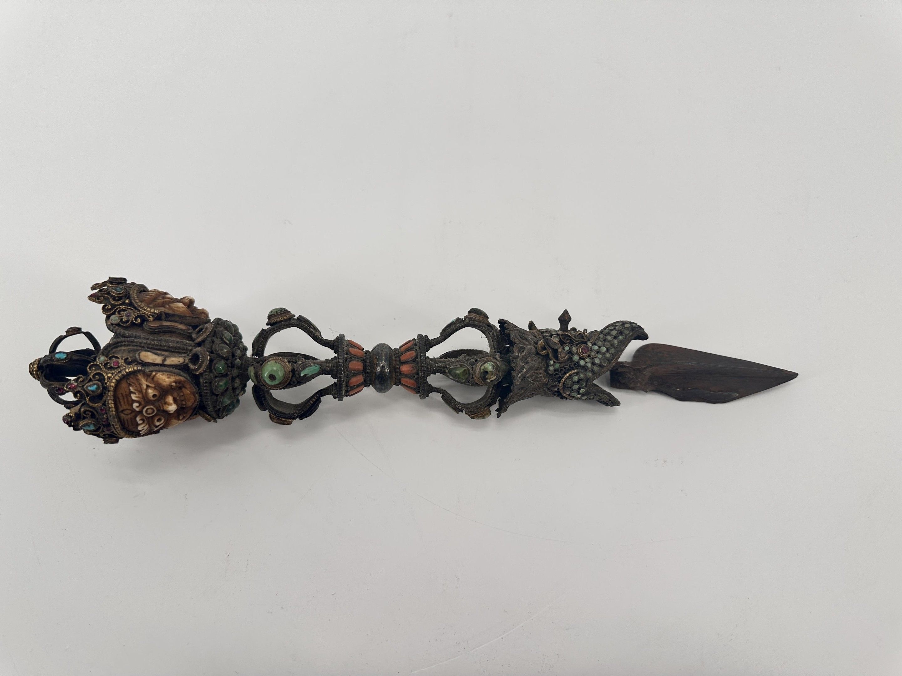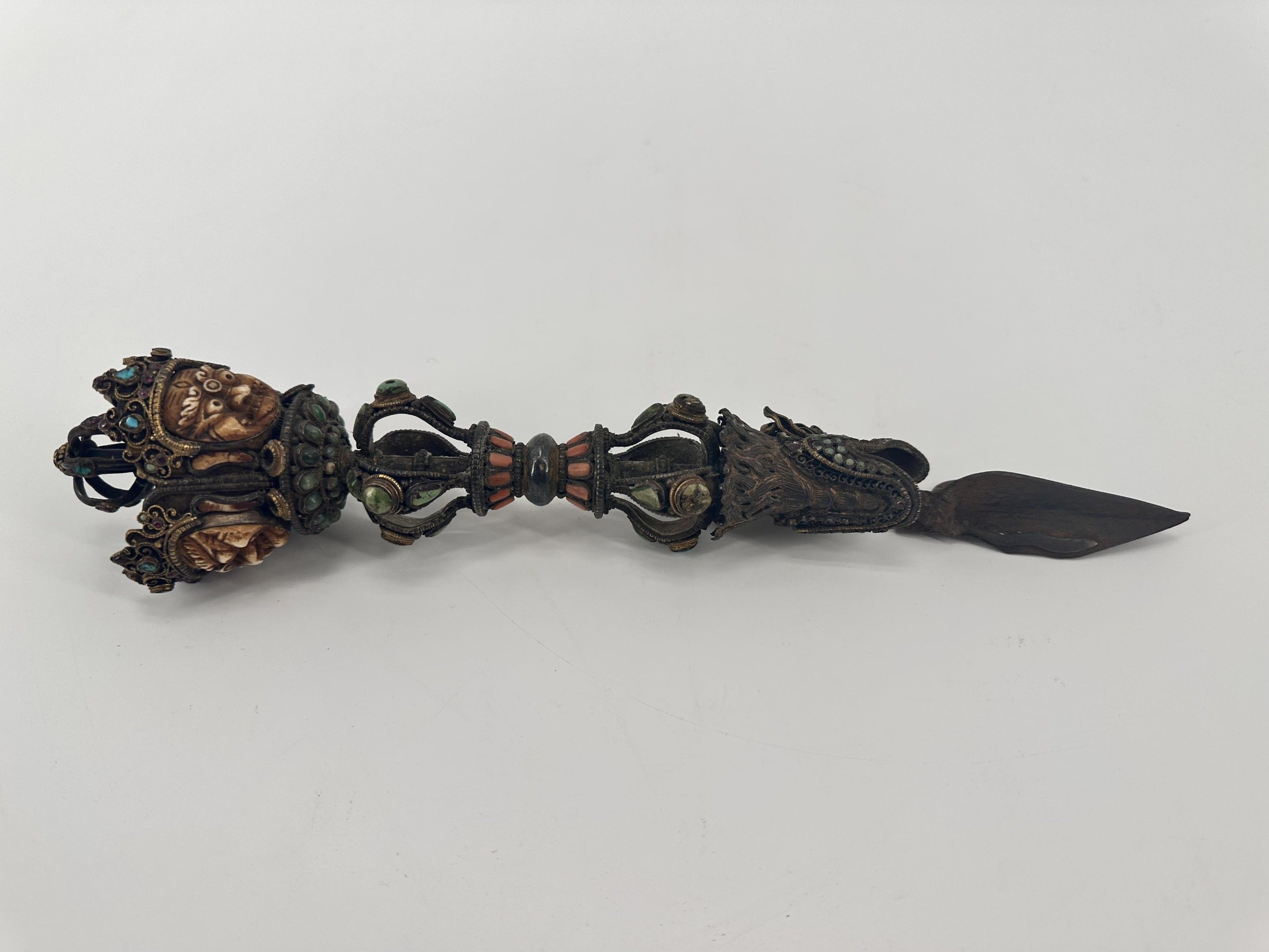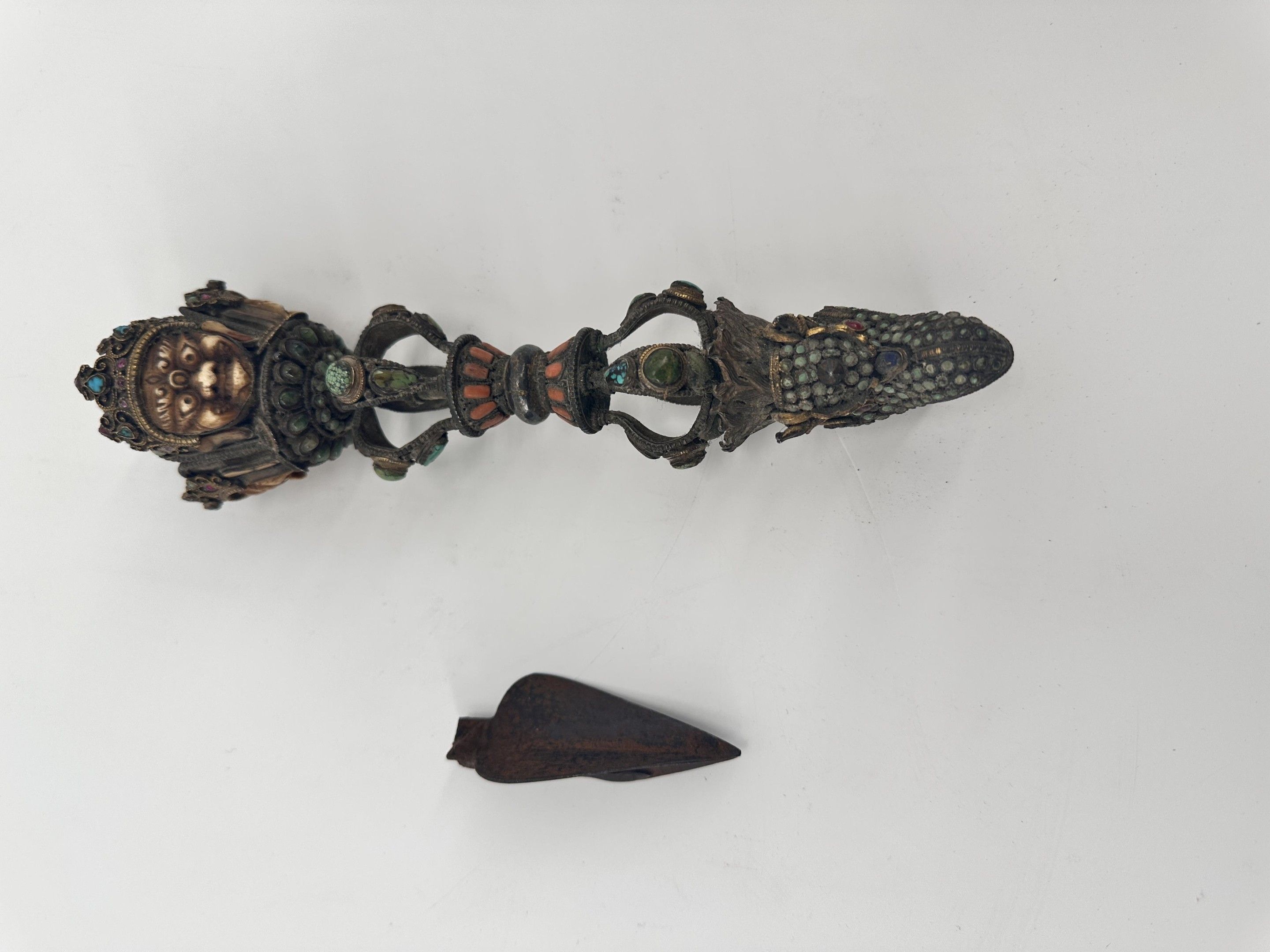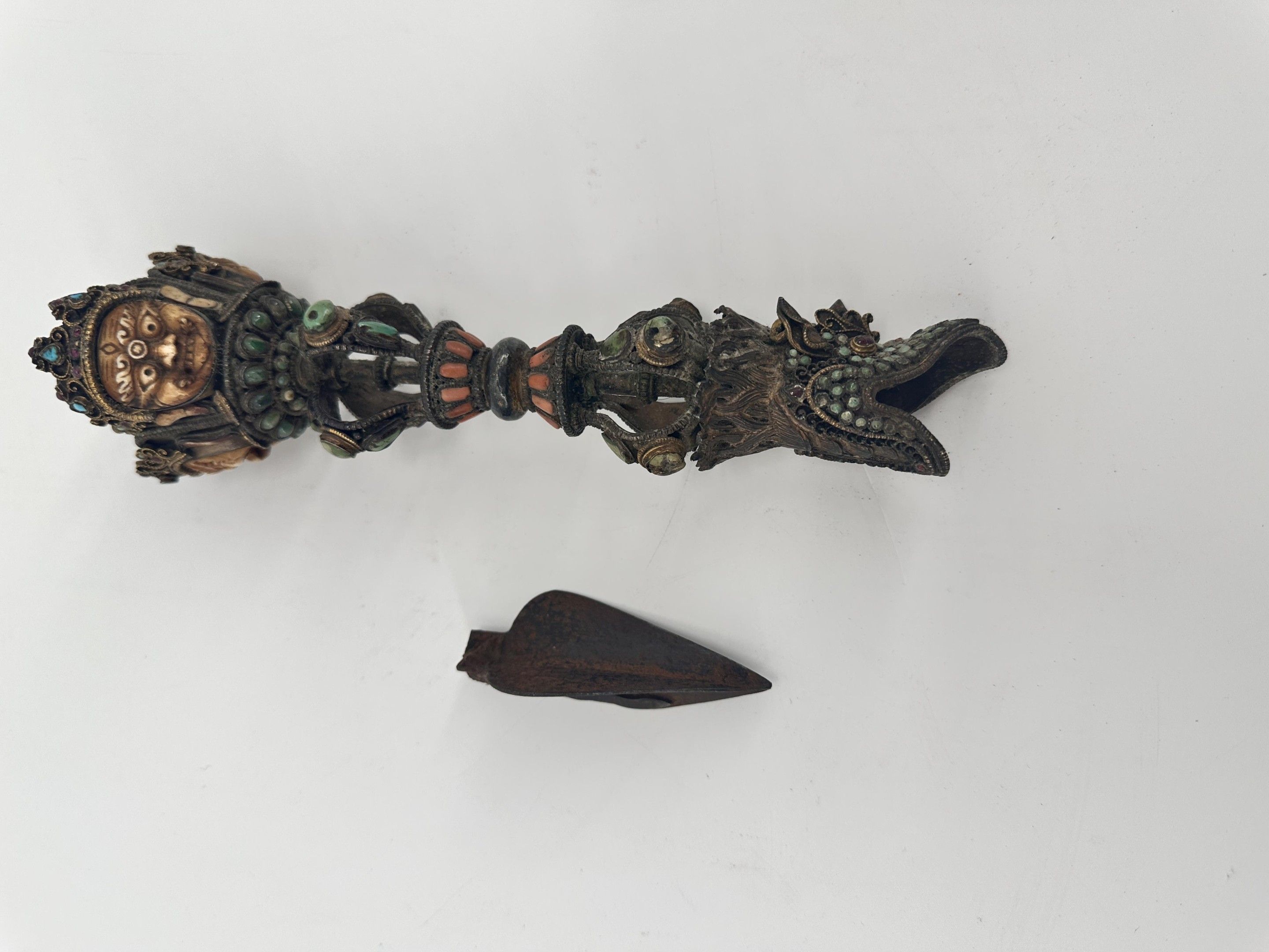 Phurba ou poignard cérémoniel en cuivre dont la lame est cra…