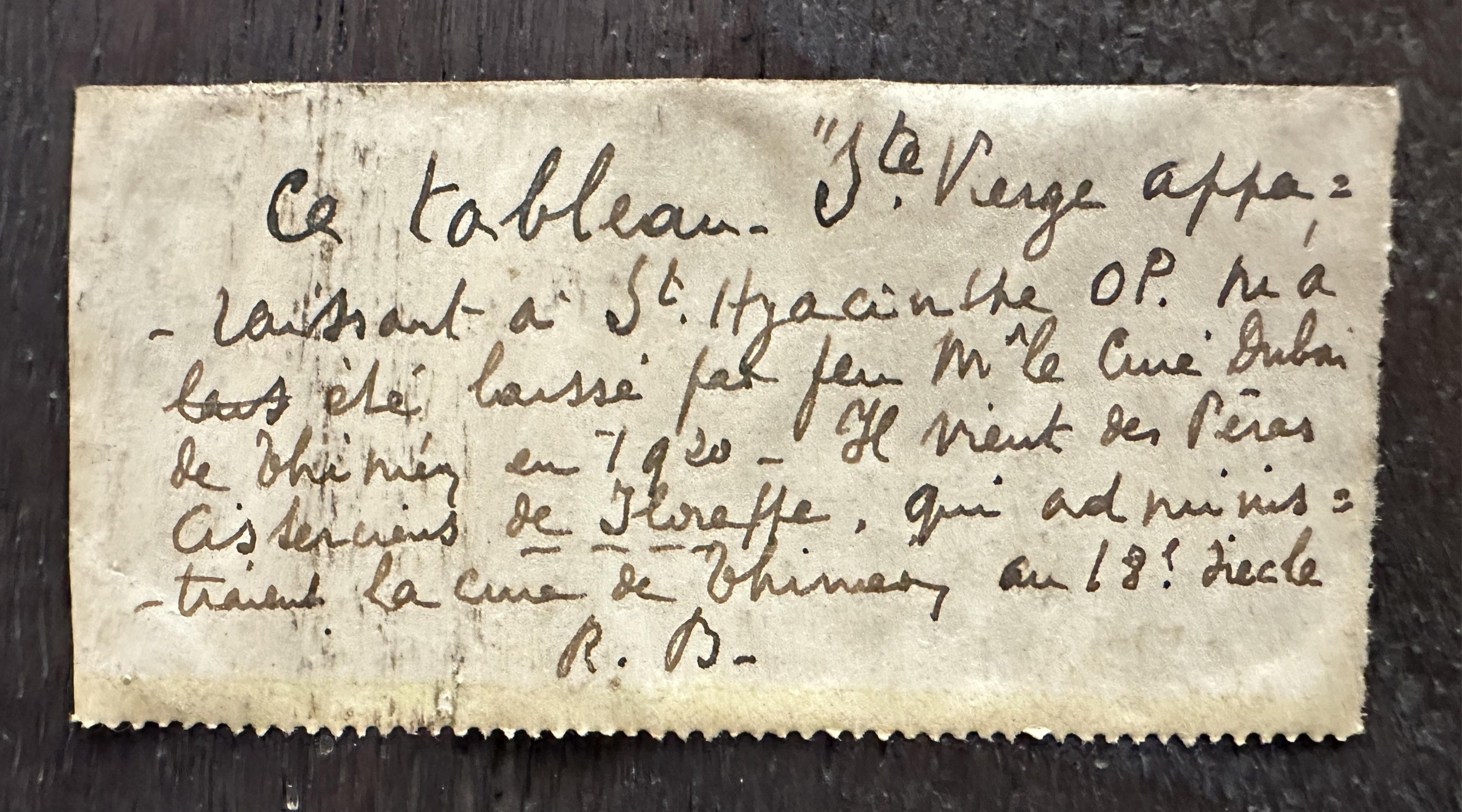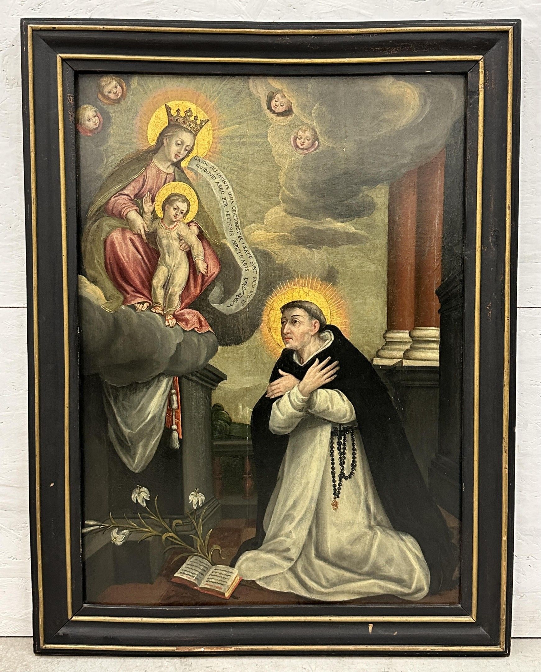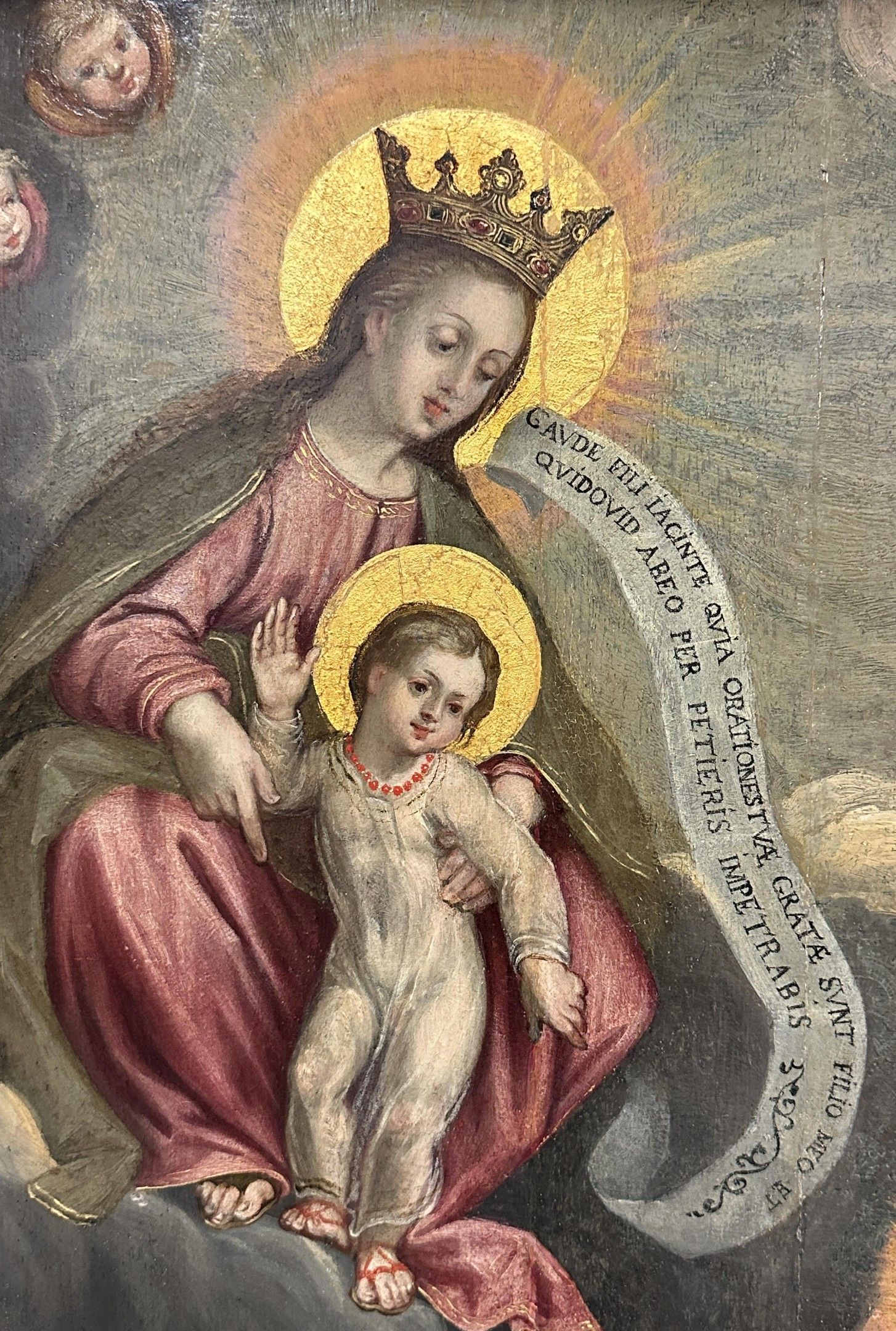 Adoration de la vierge à l'enfant. Huile sur panneau XVIIIème. Dimensions : 93 x 65 cm.