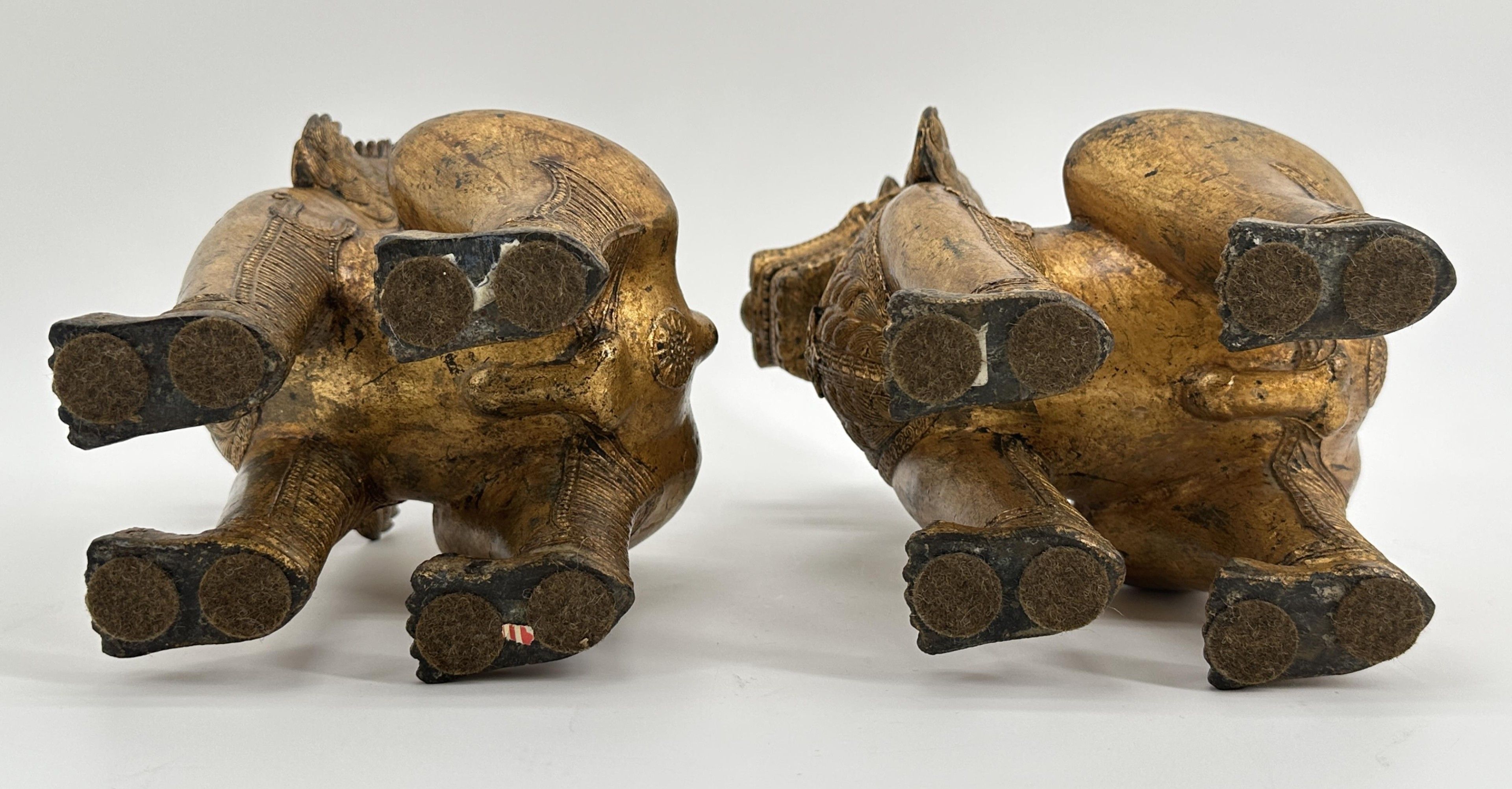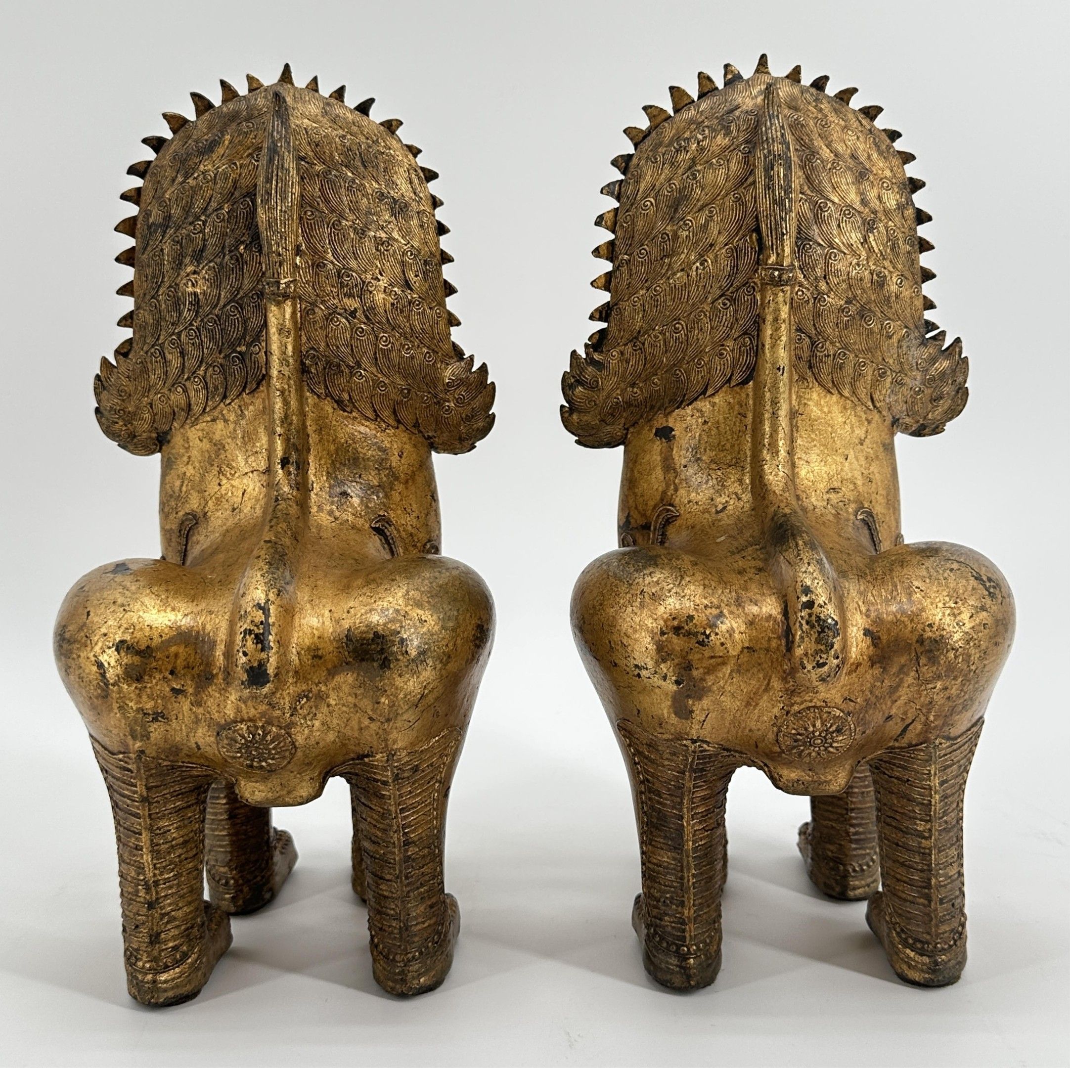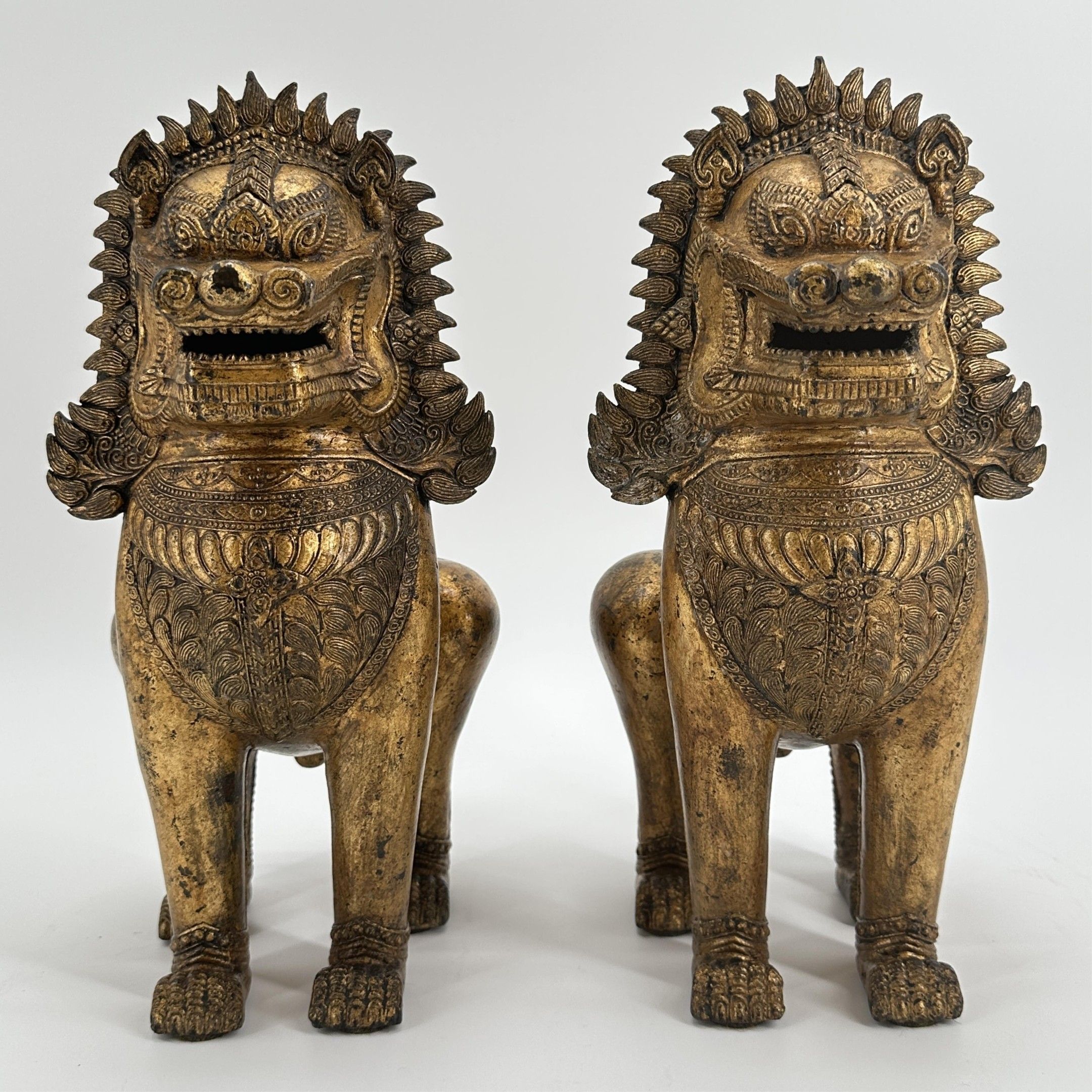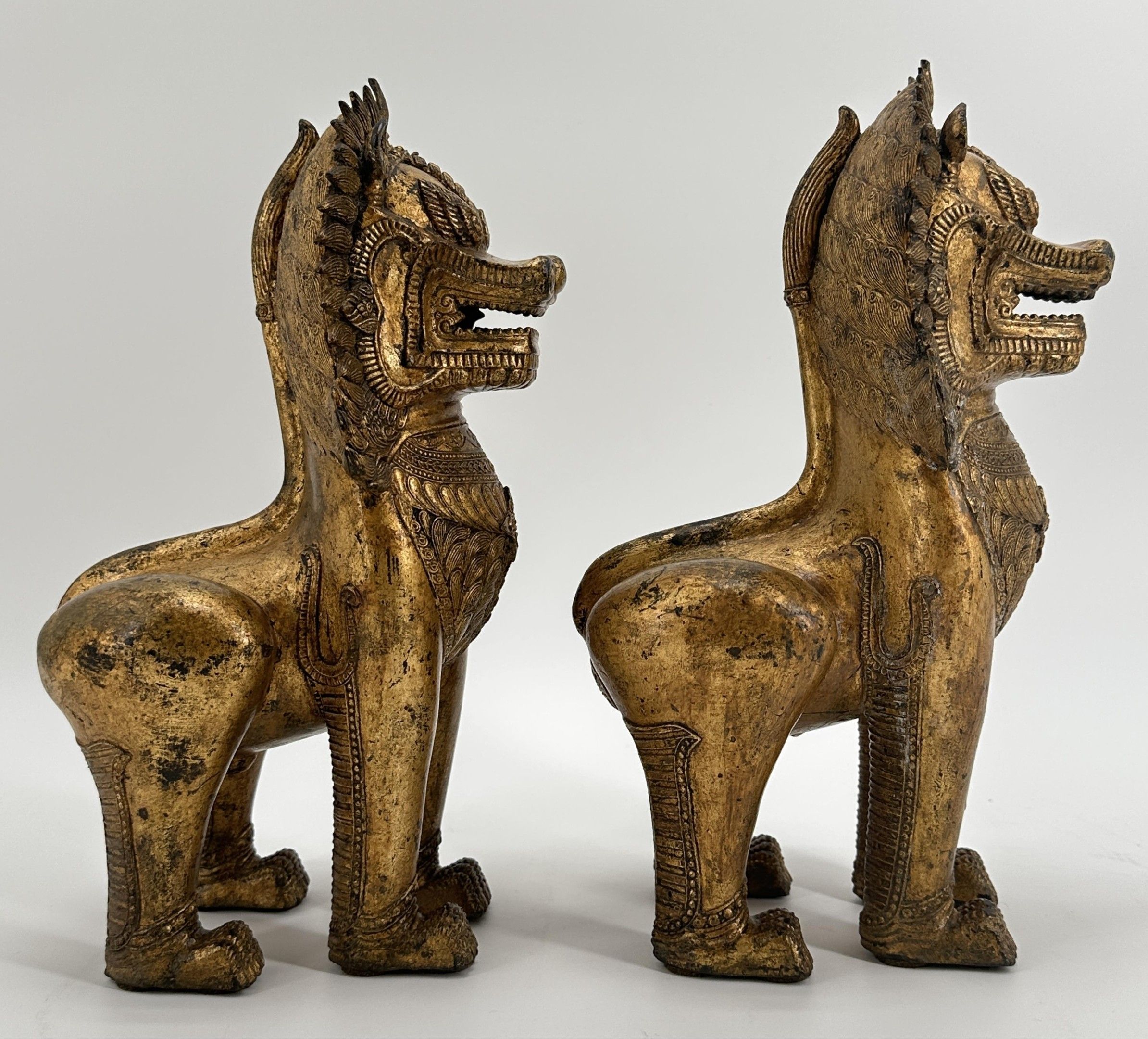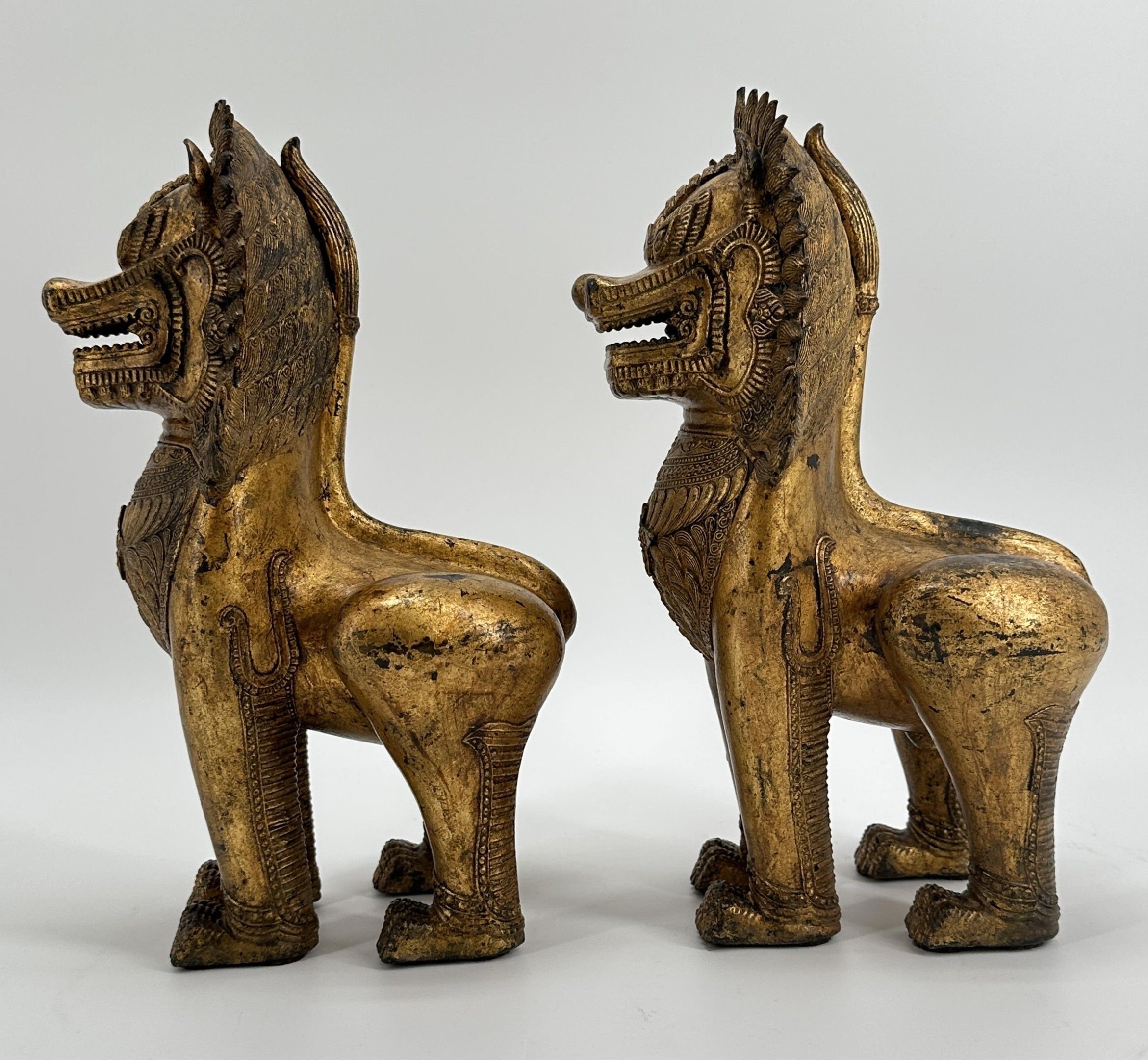 Paire de lions Singha gardiens des entrées de temples. Siam fin de la période Rattanakosin vers 1900. Ht : 32 cm. Expert : Cabinet Ansas-Papillon-de Léry. Paris.