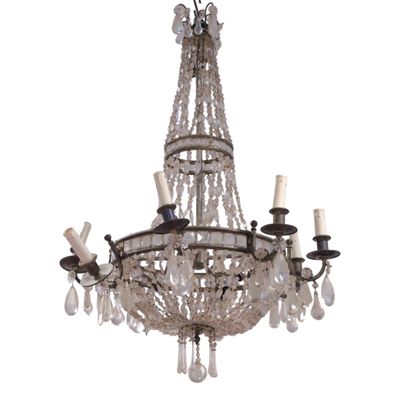 LUSTRE de forme montgolfière à pendeloques, à huit bras de l…