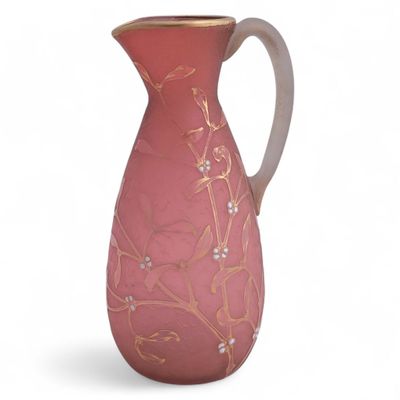 DAUM # Nancy Gui Pichet en verre givré teinté rouge, émaillé…