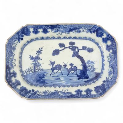 CHINE Plat octogonal en porcelaine à décor bleu blanc d'oise…