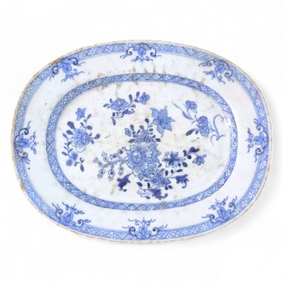 CHINE Plat ovale en porcelaine à décor bleu blanc de fleurs …