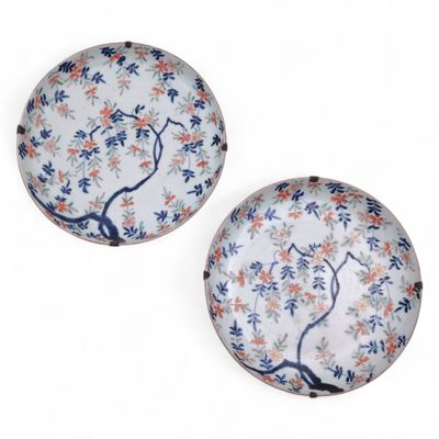 CHINE Paire d'assiettes rondes de forme calotte en porcelain…