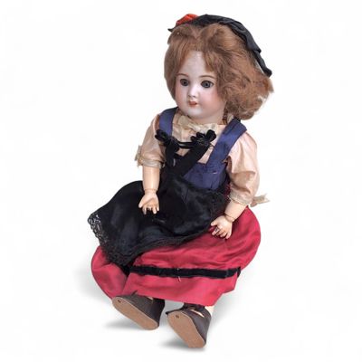SFBJ Poupée alsacienne tête biscuit, bouche ouverte, yeux do…