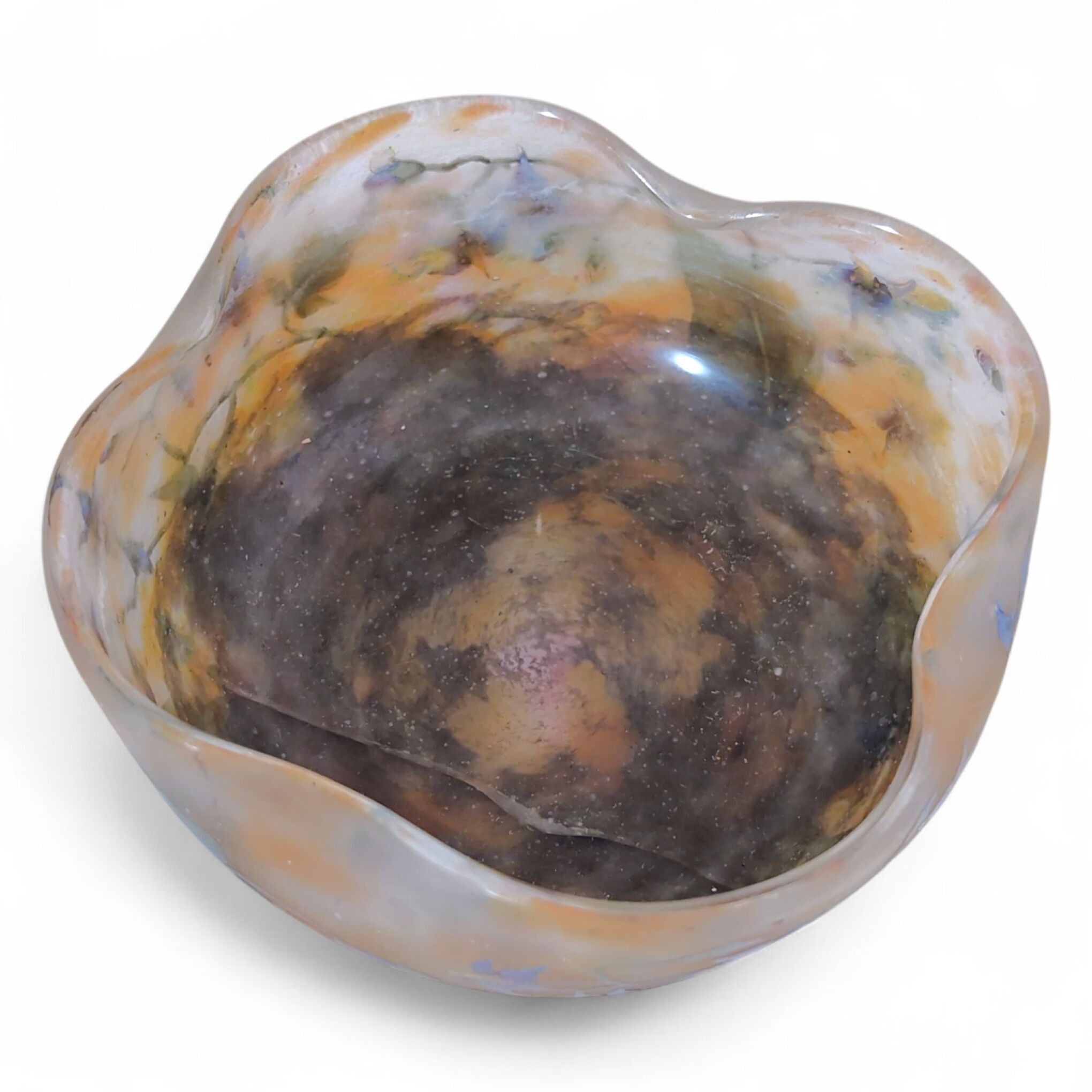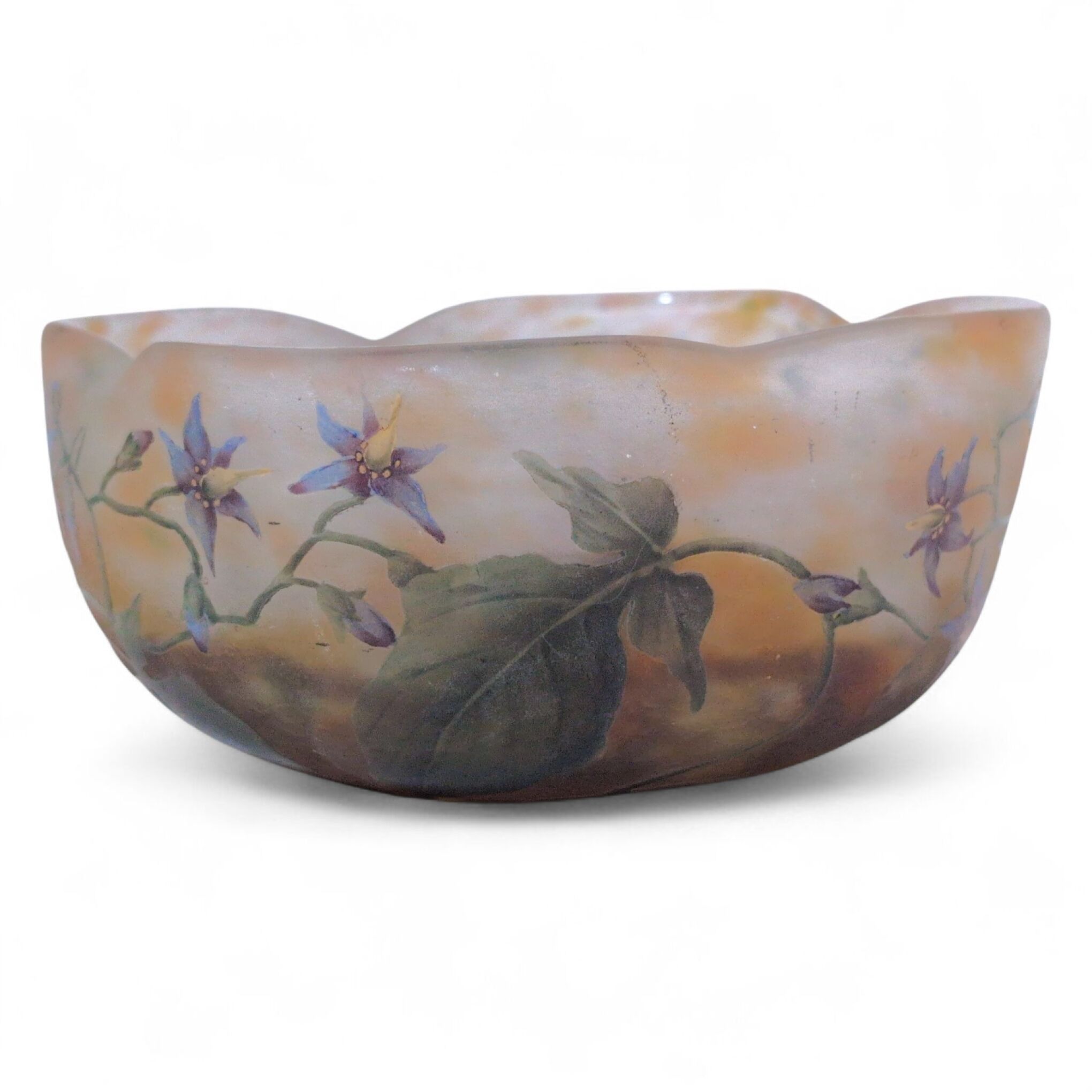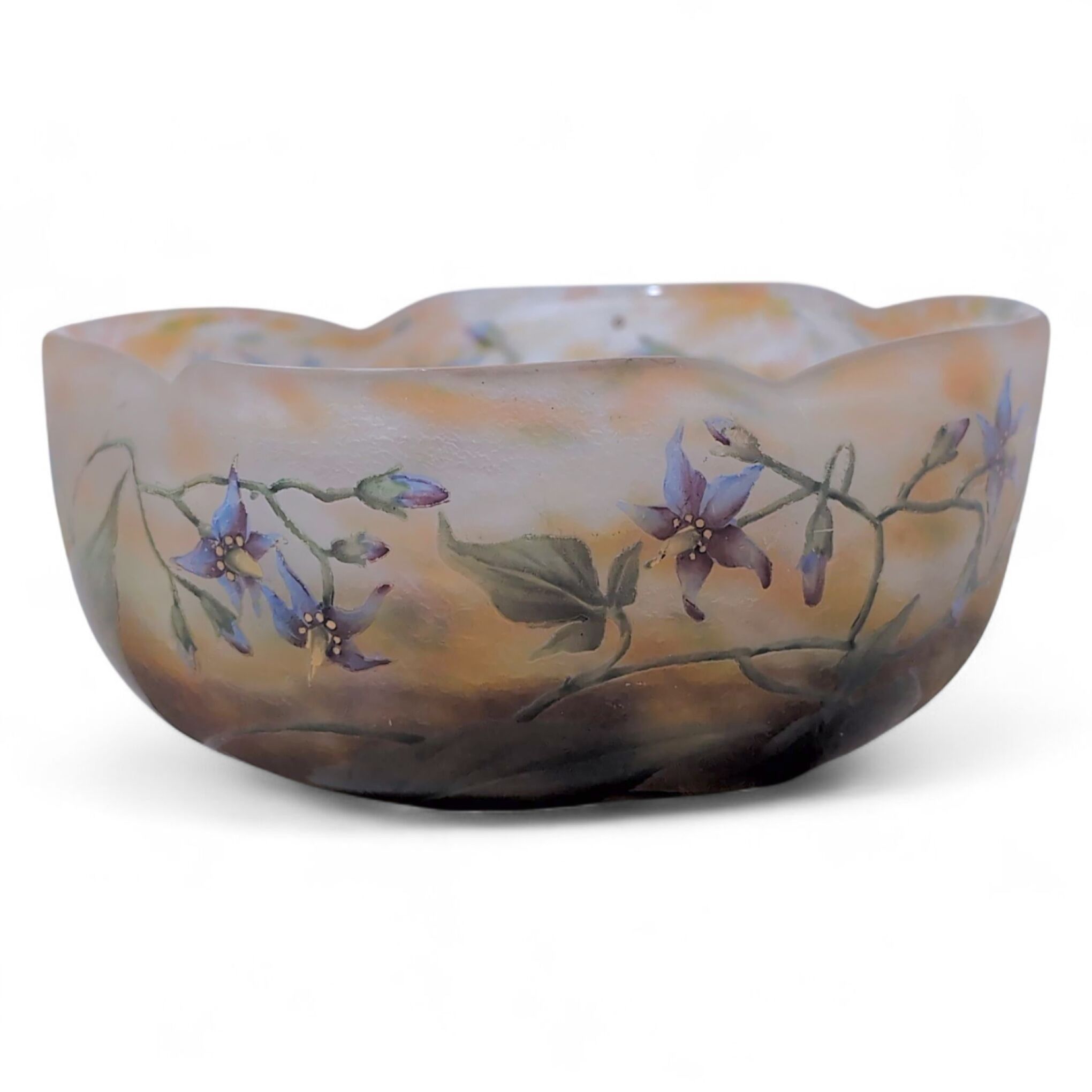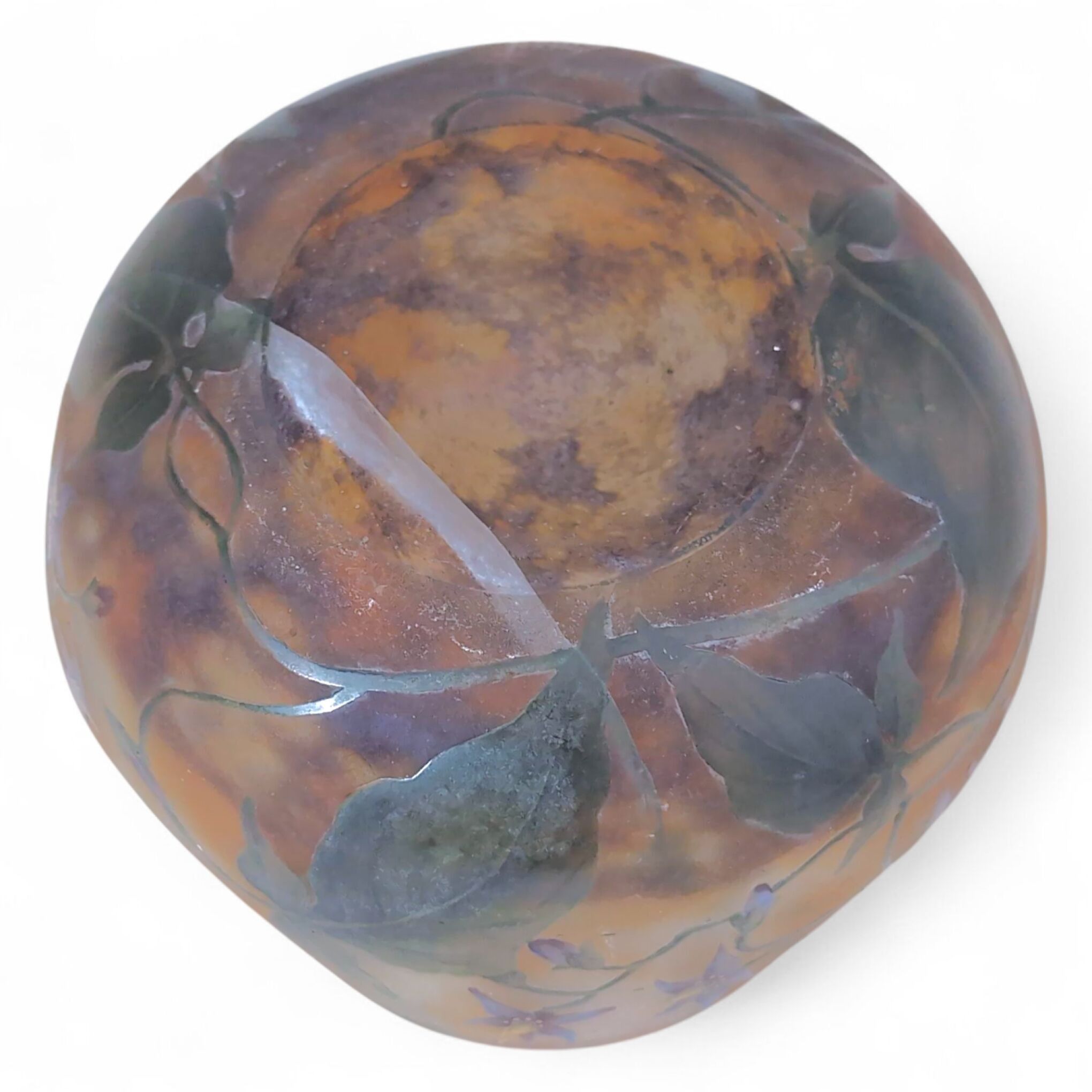 Coupe quadrilobée en verre multicouche à décor dégagé à l'acide, signée