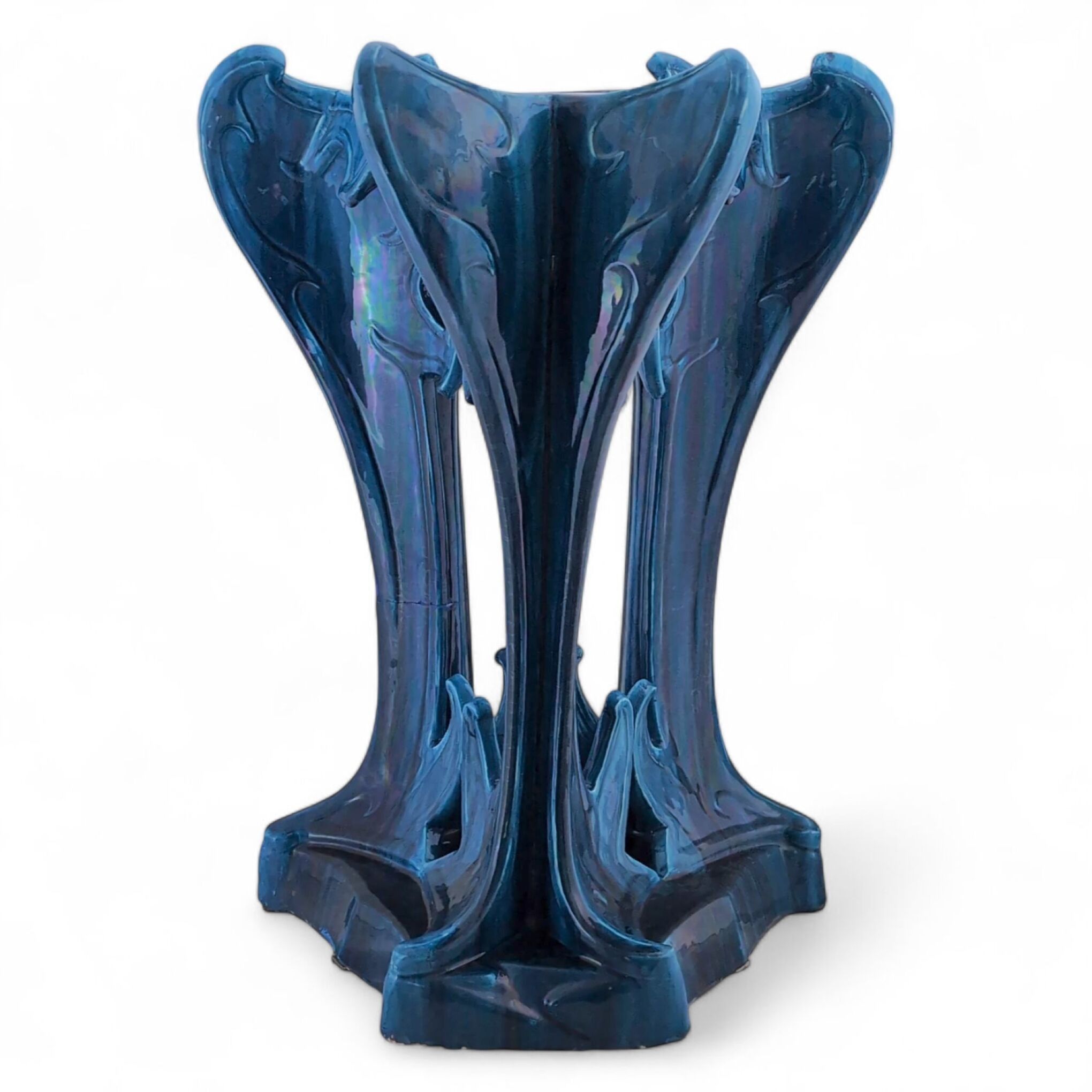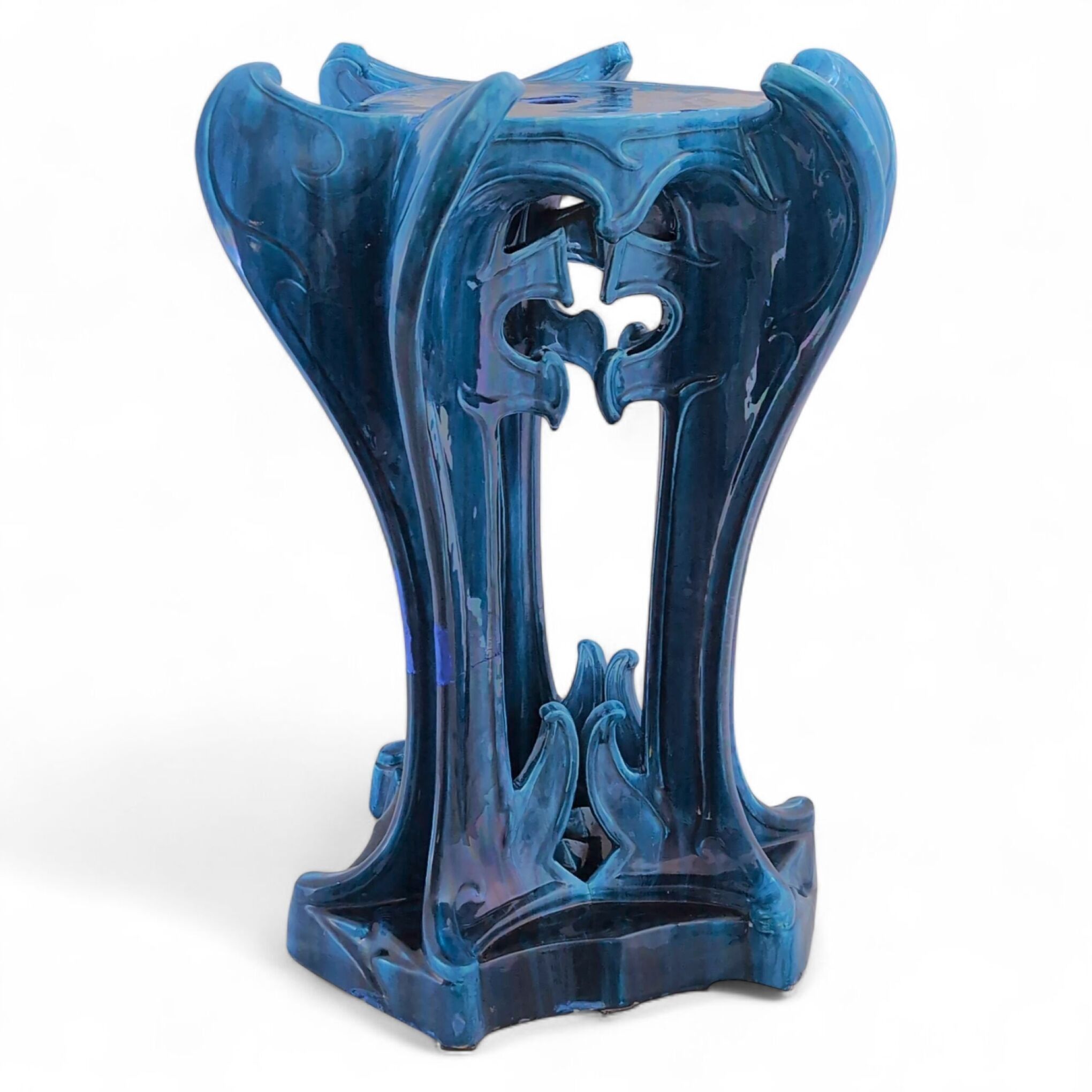 Sellette en céramique émaillée bleu, cachet au-dessous