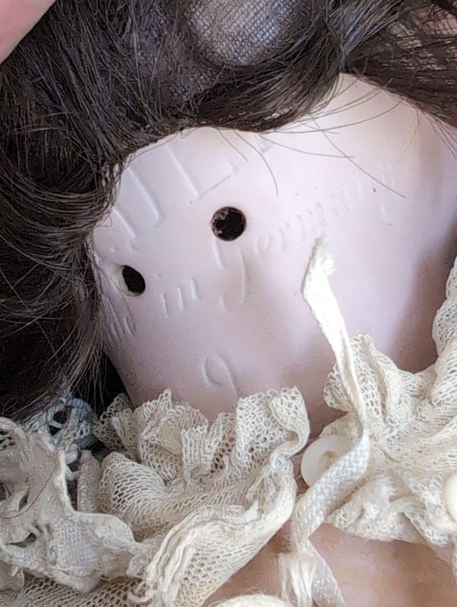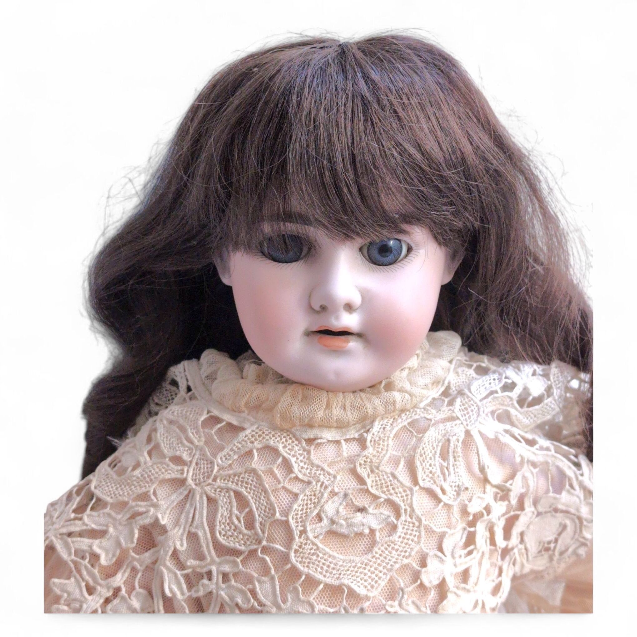 Grande POUPEE allemande tête biscuit yeux dormeurs en sulfure bleu, bouche ouverte H: 58 cm (dents cassées)