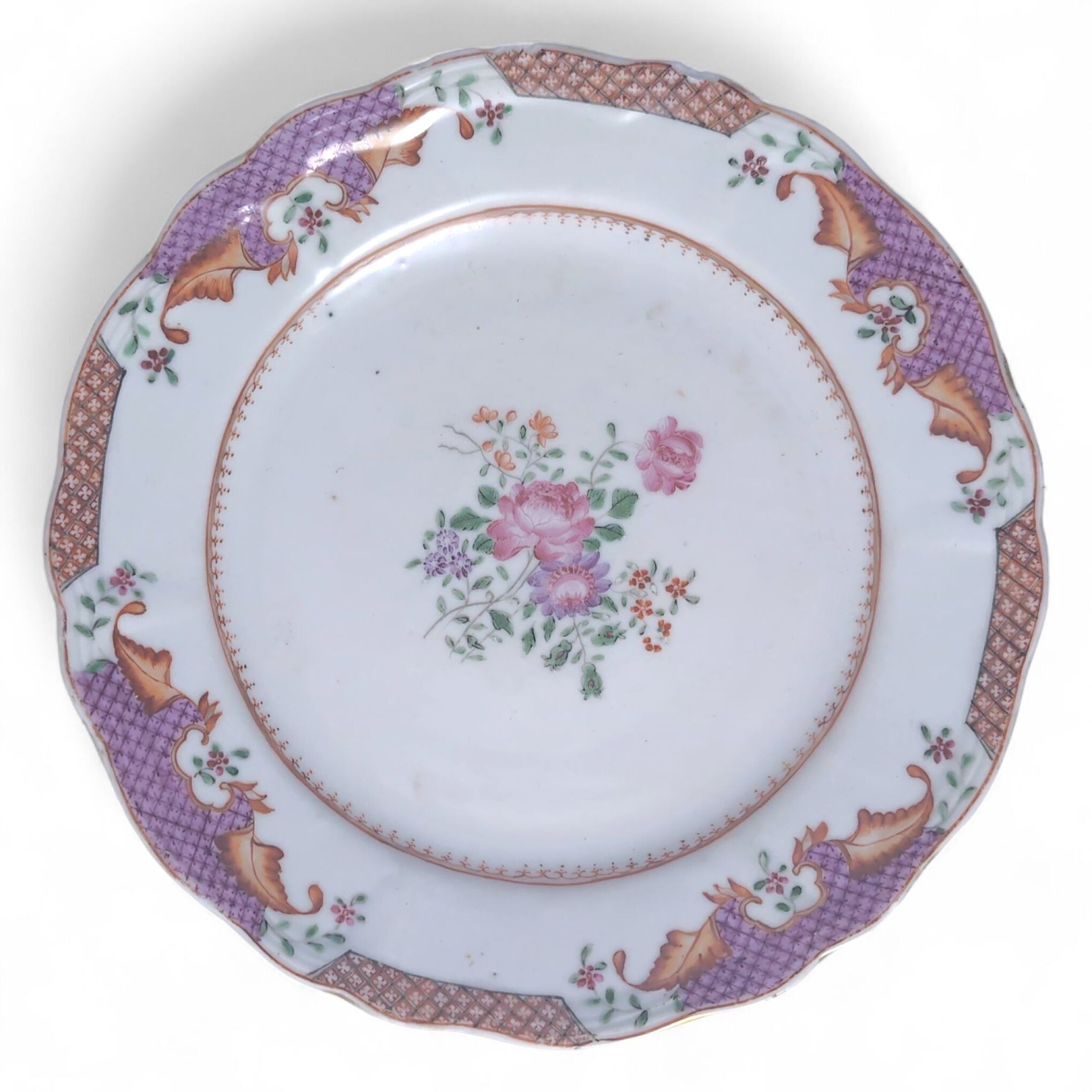 Assiette ronde en porcelaine à décor famille rose de fleurs