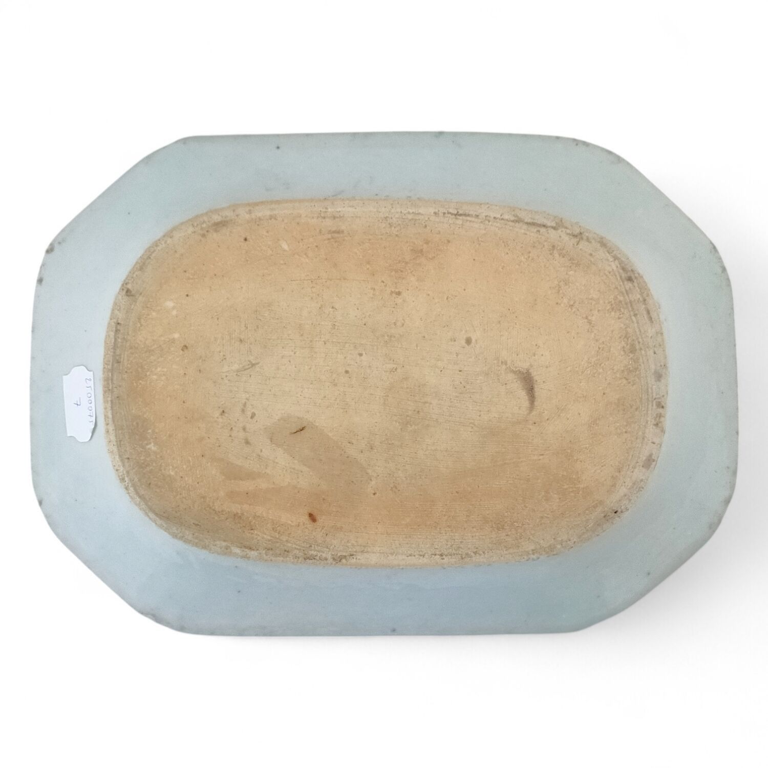 CHINE Plat octogonal en porcelaine à décor bleu blanc XIXème 31.3 x 22.5 cm (petites égrenures)