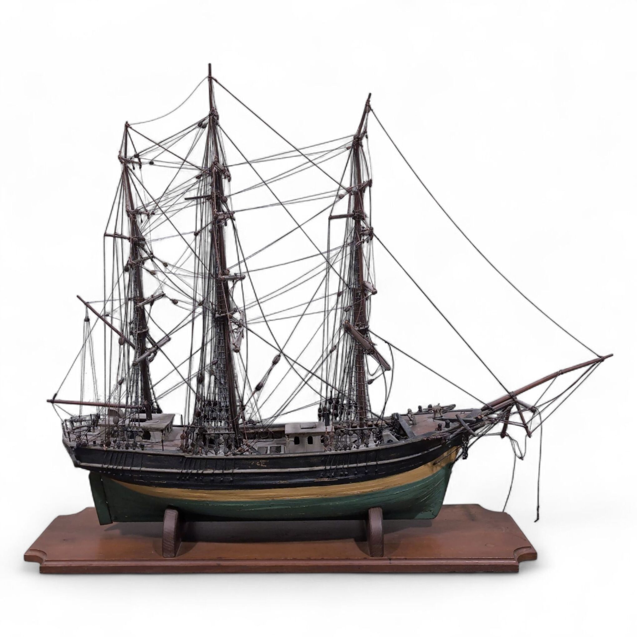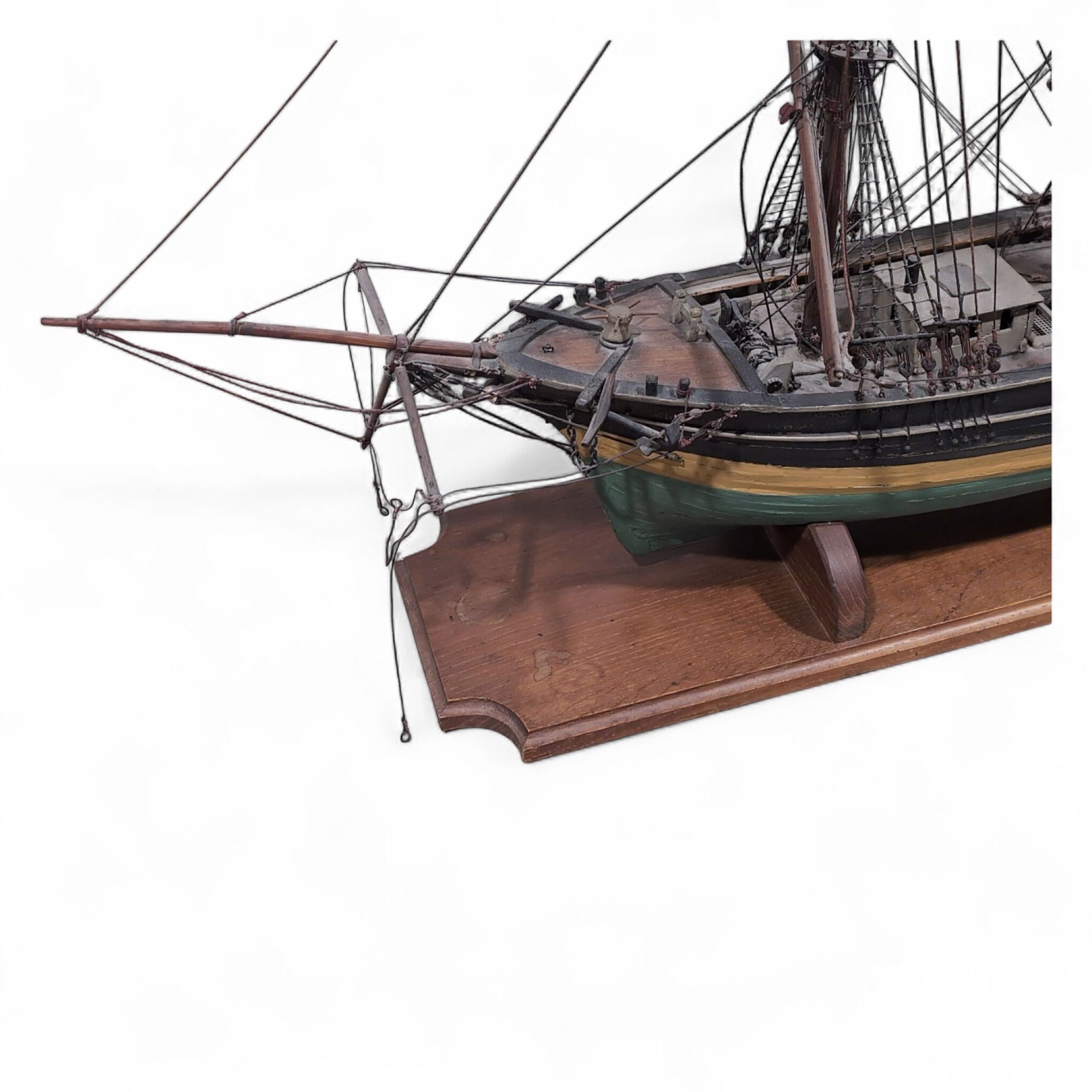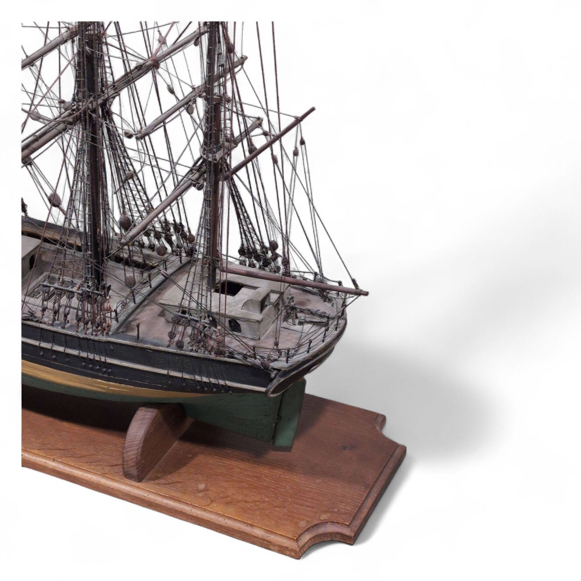 Importante MAQUETTE de trois-mâts en bois en partie peint H.
