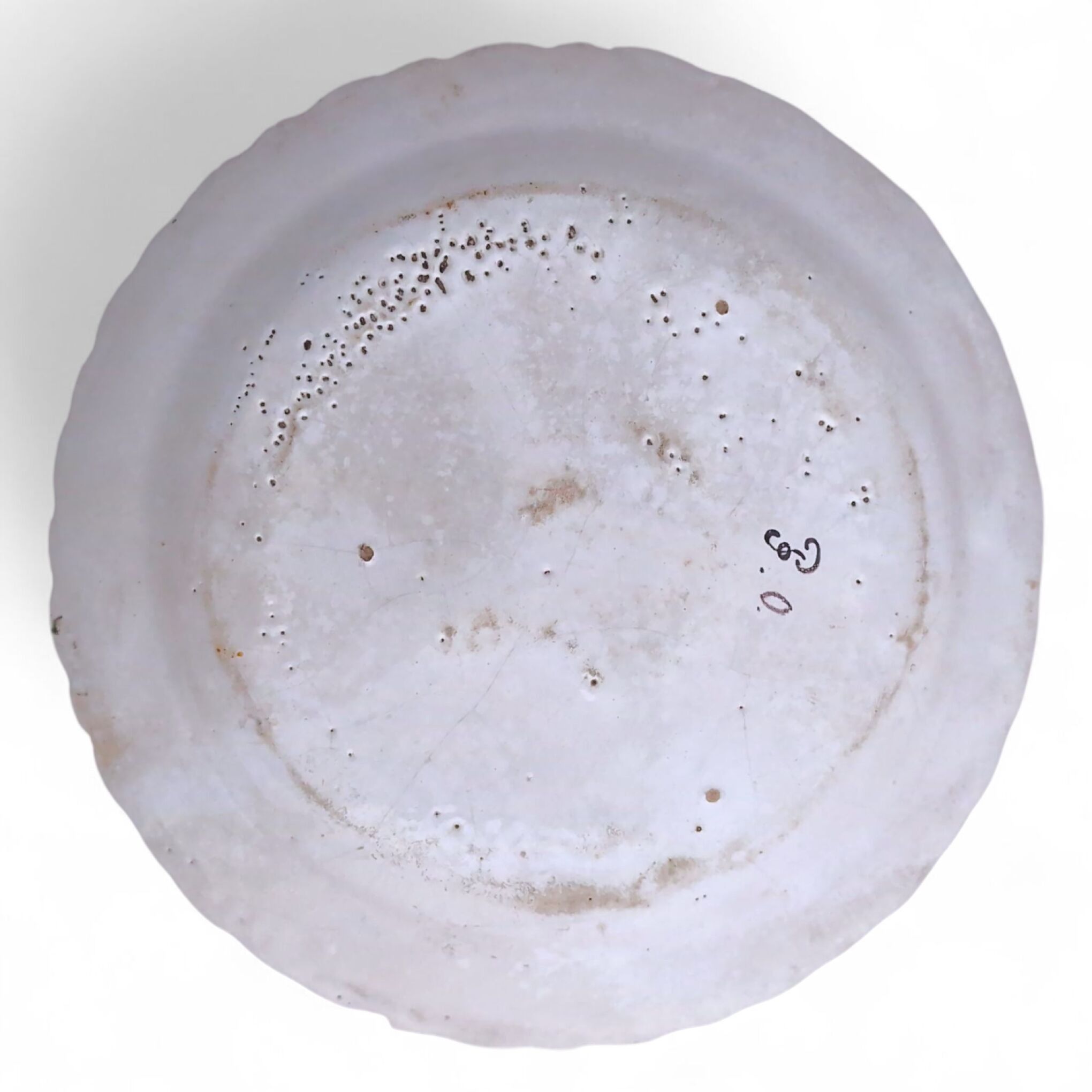 MOUSTIERS Assiette ronde en faïence à décor en camaïeu vert XVIIIème D.: 23.5 cm (fêles)
