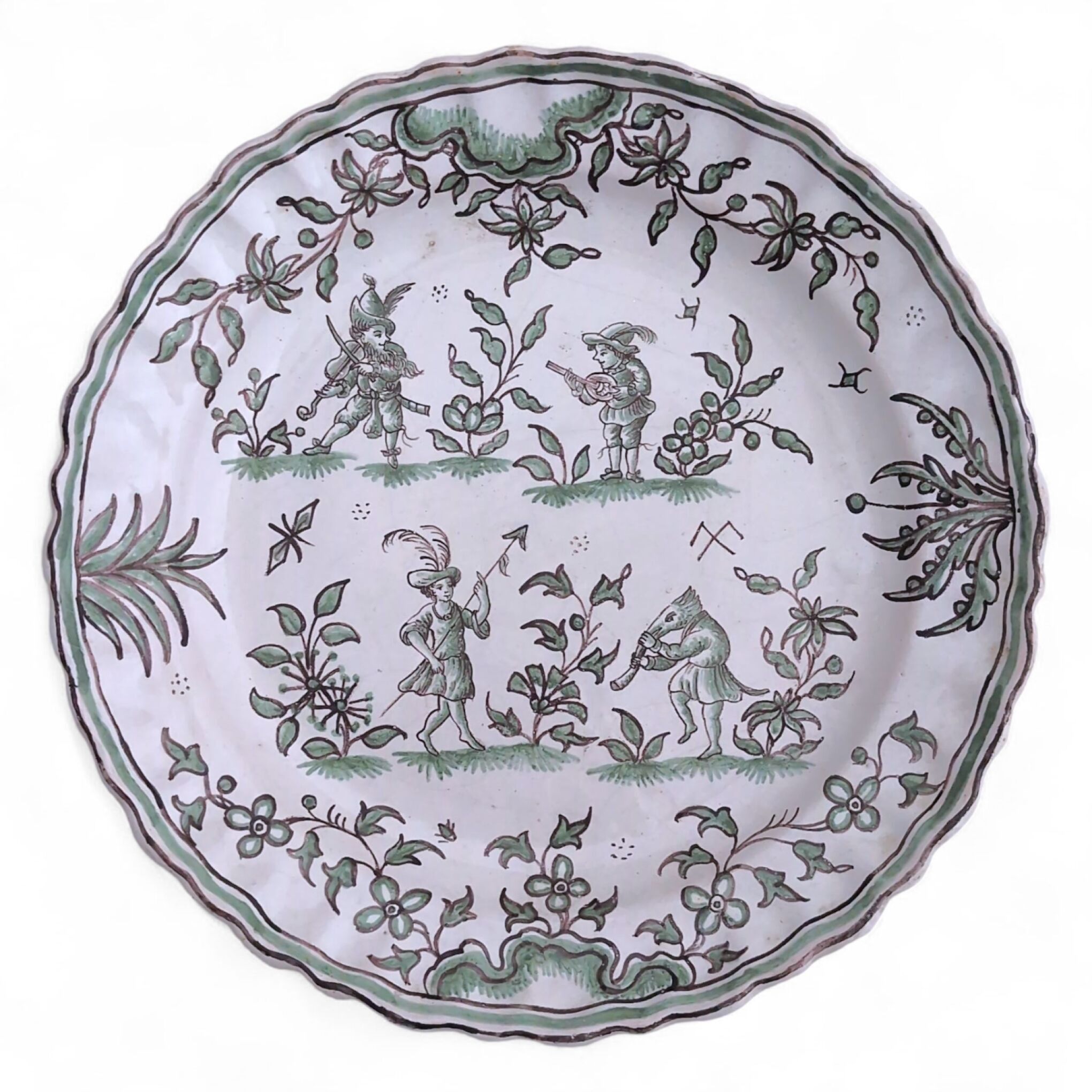 MOUSTIERS Assiette ronde en faïence à décor en camaïeu vert …