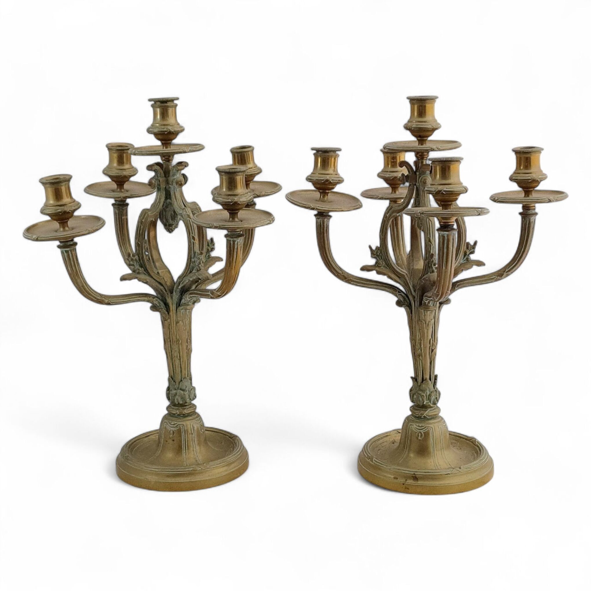 Paire de CANDELABRES en bronze à cinq bras de lumière Style Louis XVI H.: 45 cm