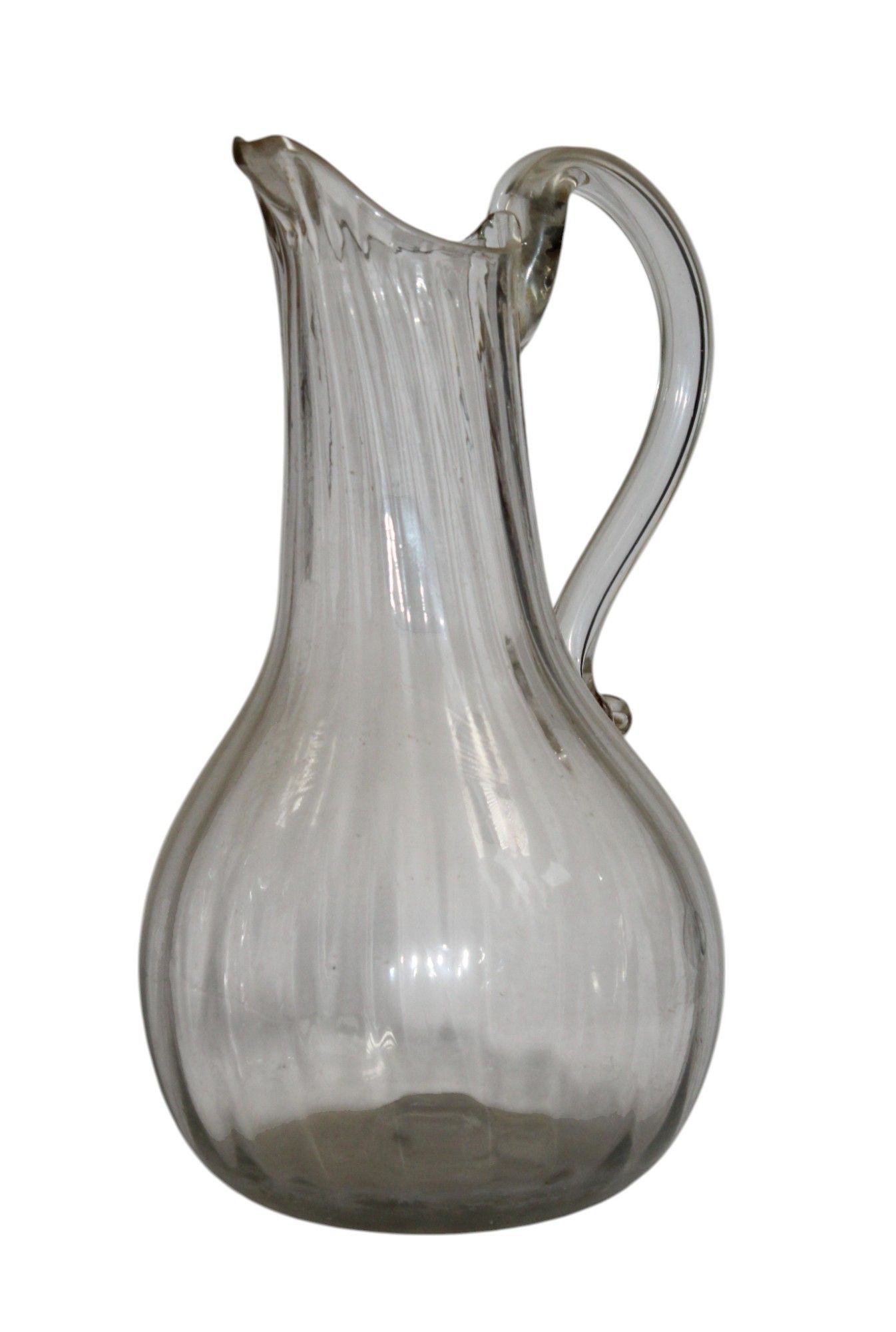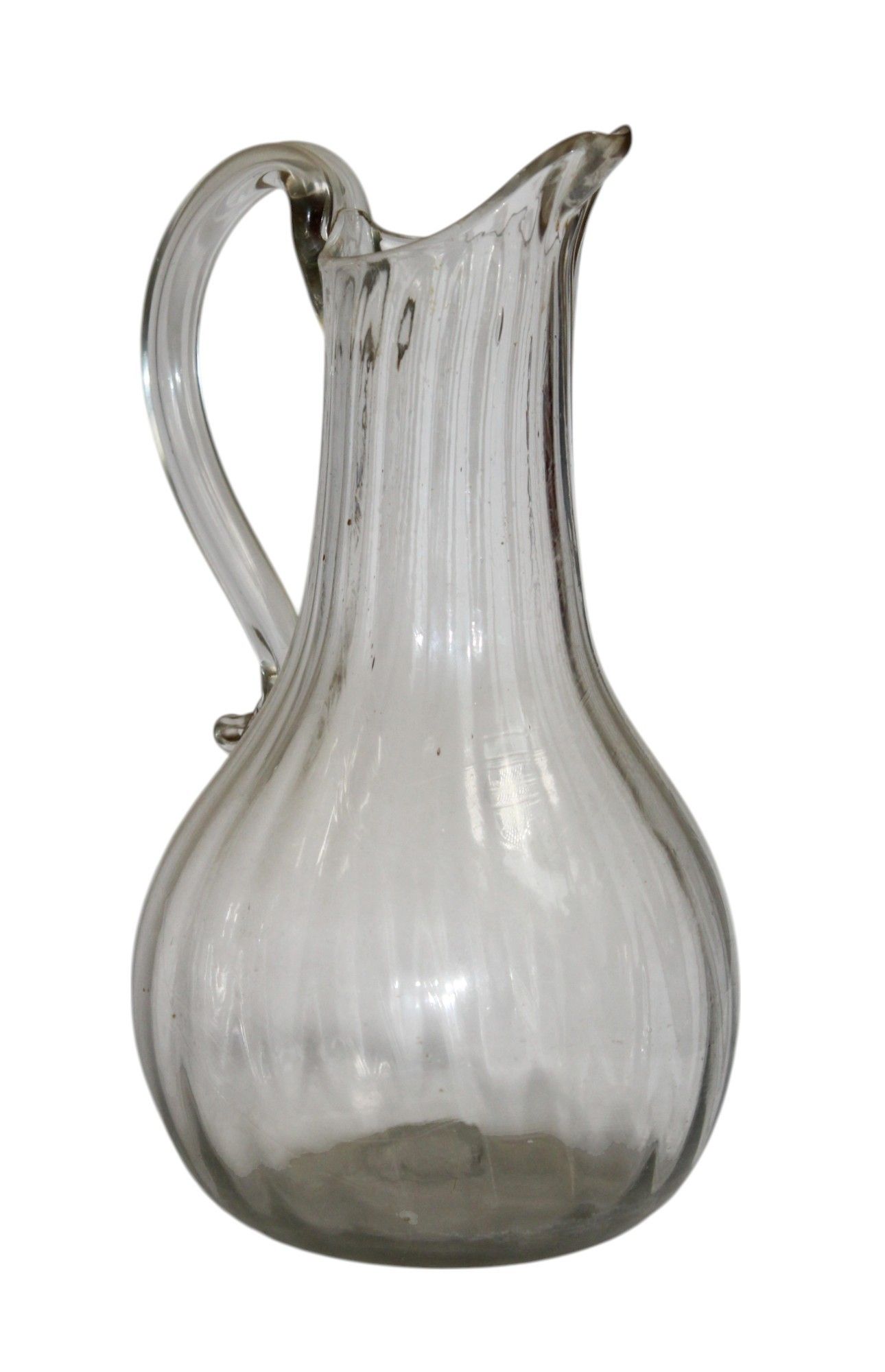 NORMANDIE, fin XVIIIème, début XIXème - Petit PICHET en verre côtelé, soufflé, anse appliquée à chaud et verseur en forme de "bec de canard", hauteur : 20 cm.