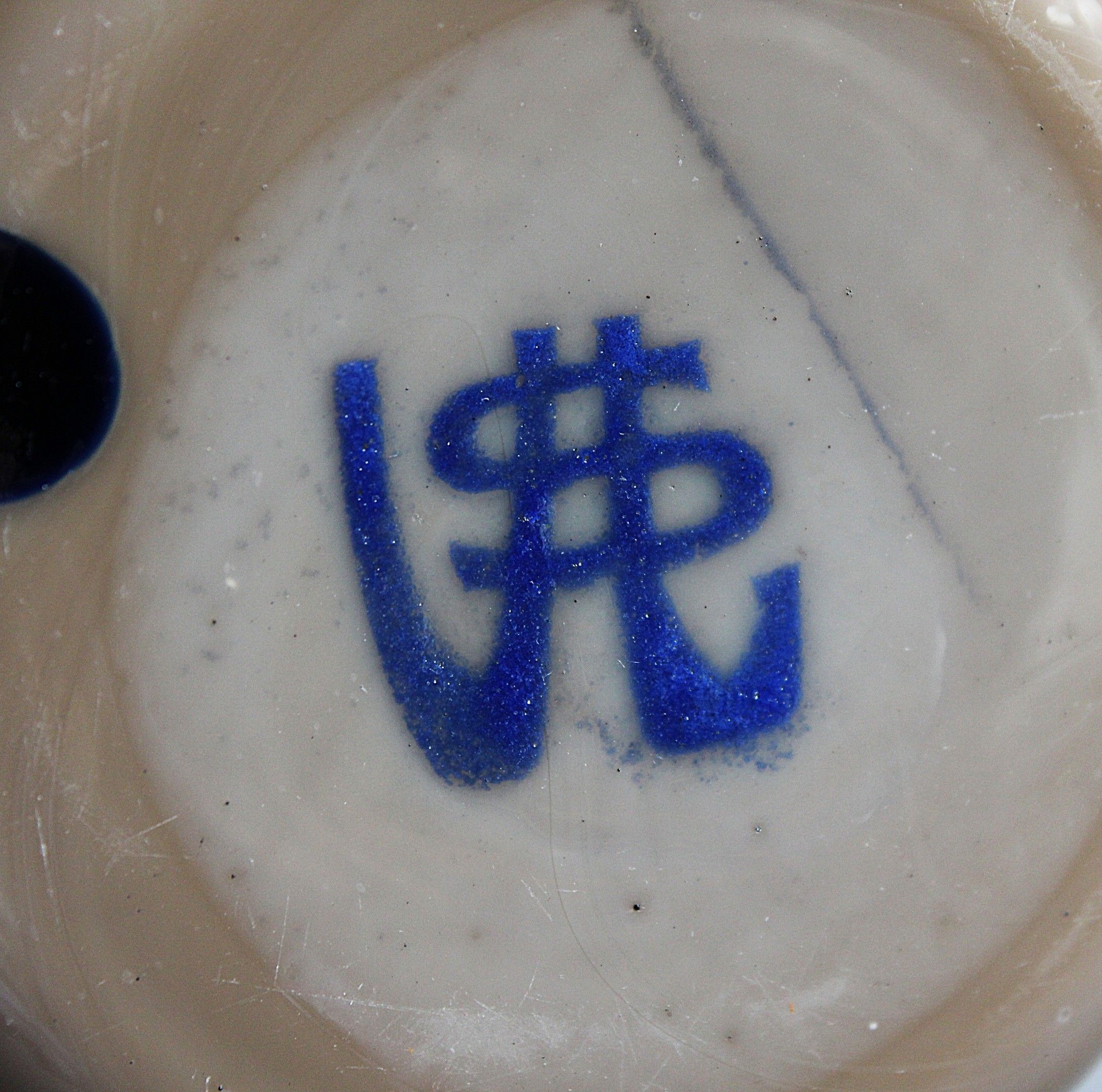Premium VAL SAINT LAMBERT - VASE en verre soufflé bleu à fond chamoi…