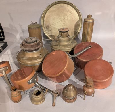 Vases, plateaux, boîtes et objets décoratifs en métal martelé.