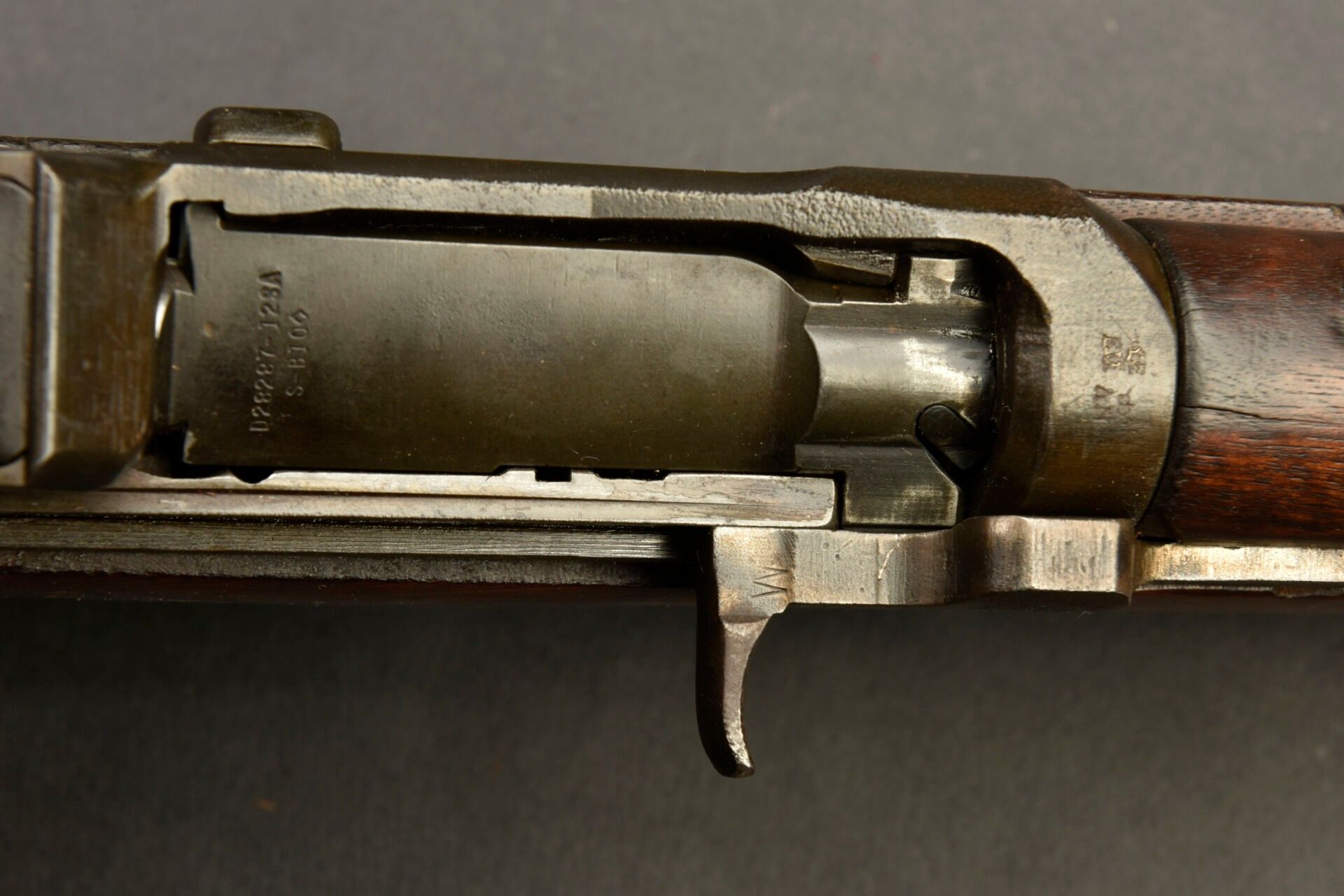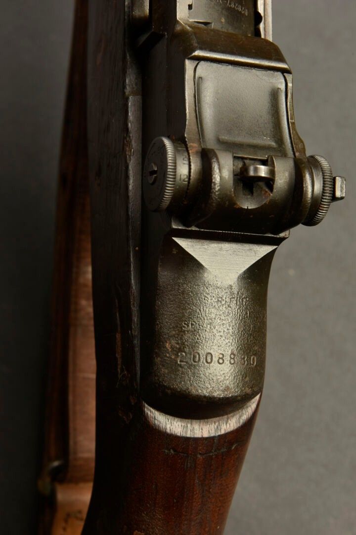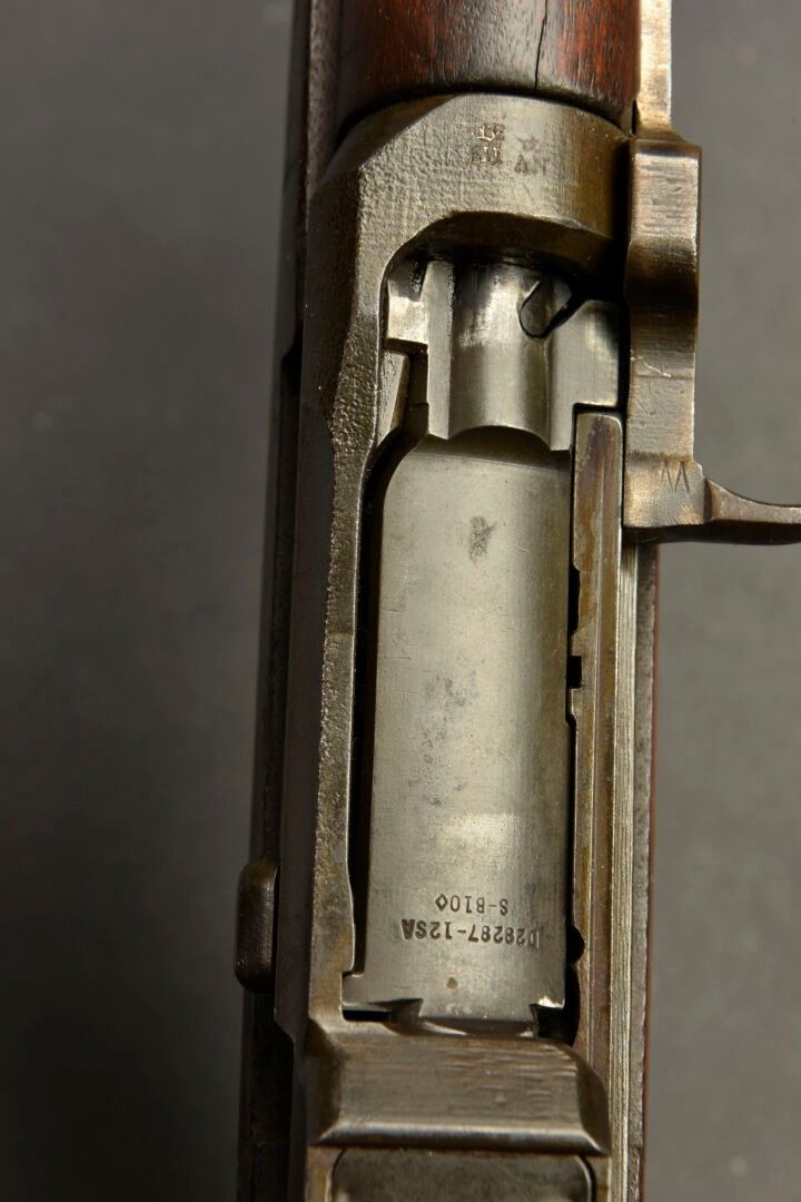 Fusil semi automatique M1 Garand. Le parties métalliques sont en relativement bon état. Canon partiellement oxydé, mais nettoyable. Belle crosse en bois, disposant de la lettre P au niveau de la poignée. Fabrication Springfield Armory, numéro 2008880. Culasse bloquée par la neutralisation. Belle bretelle en cuir complète. A noter une certaine usure et patine de la pièce. Etat II+. 2+.Arme de catégorie C9. Armes à feu neutralisées UE 2017. Lors de l'achat, l'acquéreur doit présenter un pièce d'identité en cours de validité (CNI ou passeport) et selon le cas, soit un certificat médical original de moins de 1 mois + compte SIA-détenteur, soit la copie recto-verso du permis de chasser accompagné de le validation de l'année en cours ou de l'année n-1 et son compte SIA-détenteur, soit la licence de tir sportif de l'année en cours (licence + attestation de licence téléchargée sur EDEN-ITAC + compte SIA-détenteur du tireur sportif). Si l'adresse de facturation est différente de celle figurant sur le titre d'identité, il faudra produire un justificatif de domicile de moins de 1 mois. La transaction n'aura lieu qu'après consultation du FINIADA. Les formalités et la consultation de ce fichier seront facturées 50 euros par arme achetée.( 25 € TTC pour un acheteur professionnel).