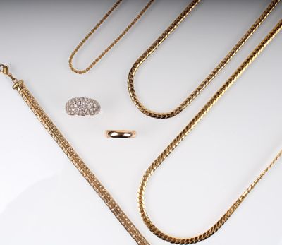 Ensemble de trois chaînes en métal doré.
