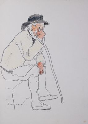 Jean LACHAUD (1889-1952) Etude de breton assis, sa canne à l…