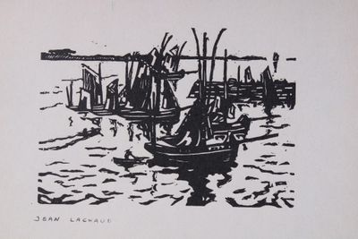 Jean LACHAUD (1889-1952) Retour de pêche Xylographie en noir…