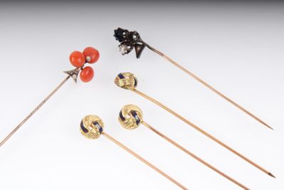 Réunion de 5 épingles de cravate, XIXe siècle.