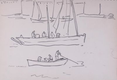 Jean LACHAUD (1889-1952) Pêcheurs en mer Dessin au fusain su…