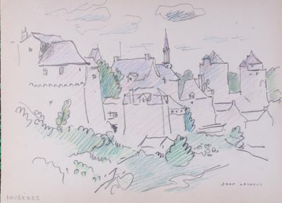 Jean LACHAUD (1889-1952) Vue de Fougères Dessin aux crayons …