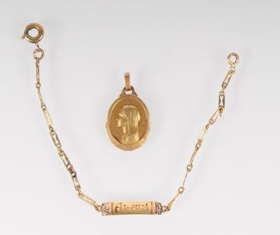 Bracelet d'identité et médaille religieuse en or.