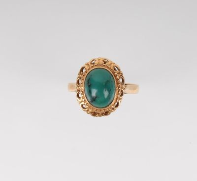Bague, turquoise et or. En or jaune 18k (750) sertie d'un ca…
