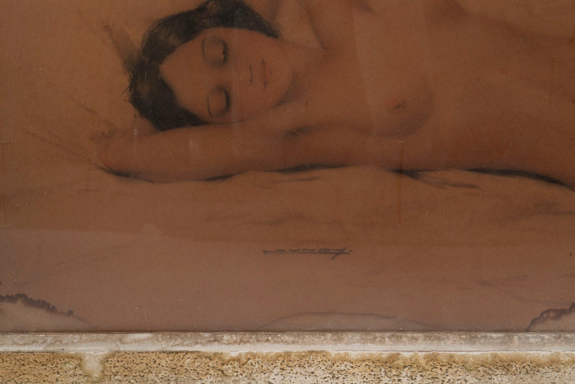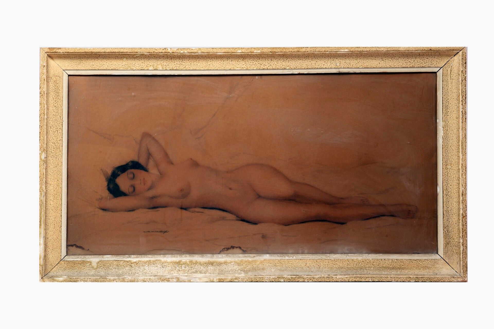 TAUNAY (XXe siècle) Nu féminin alanguie Technique mixte, Sig…