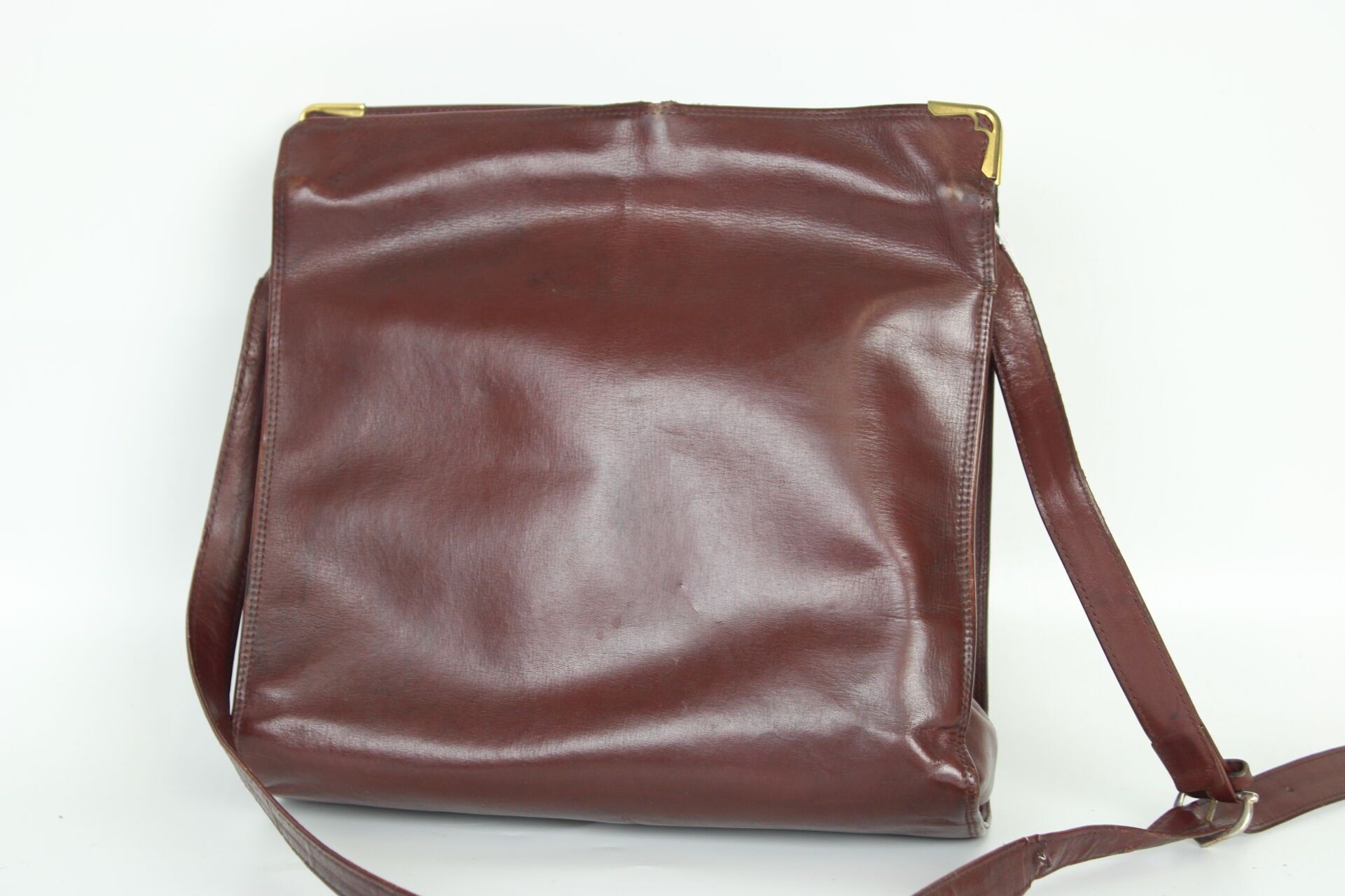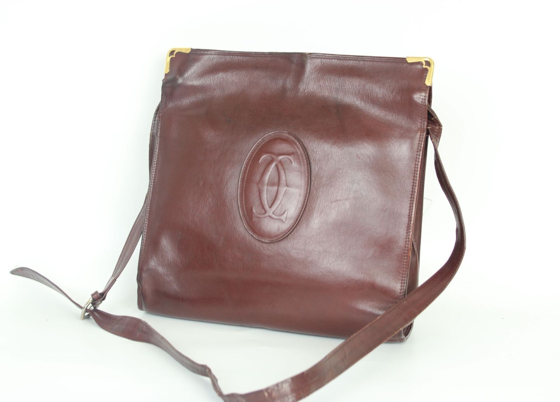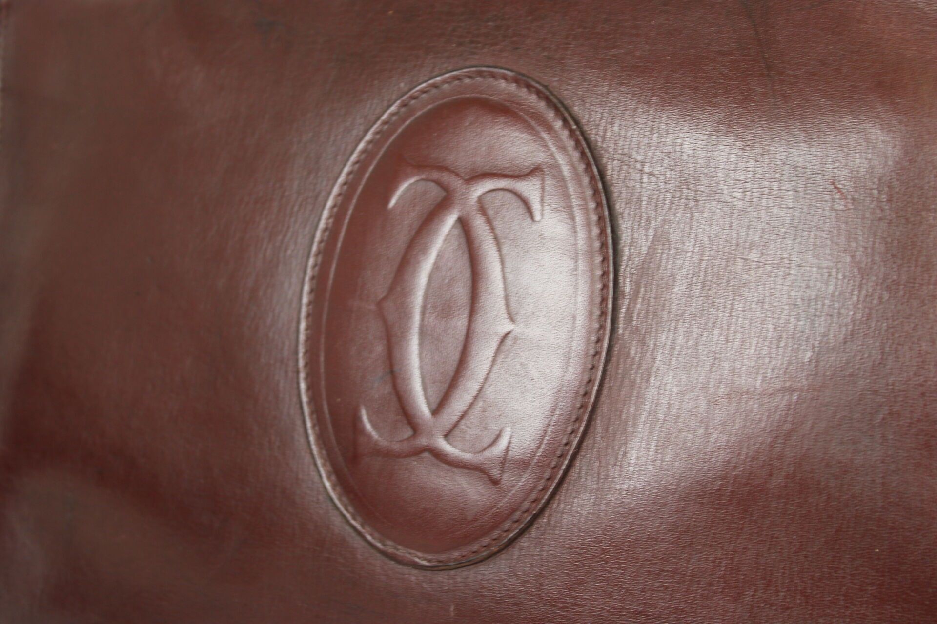 CARTIER Sac bandoulière en cuir bordeaux, doublure en cuir b…