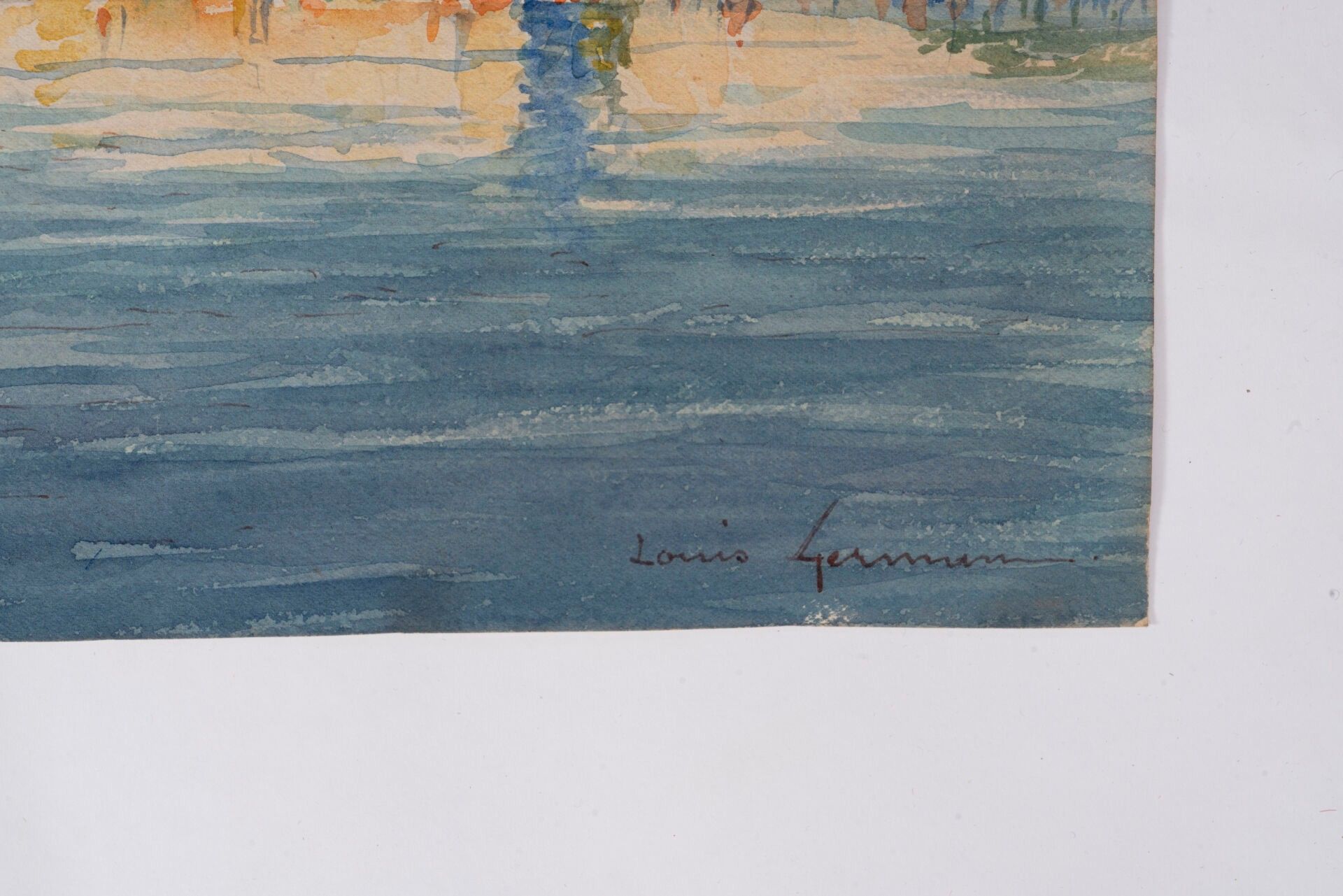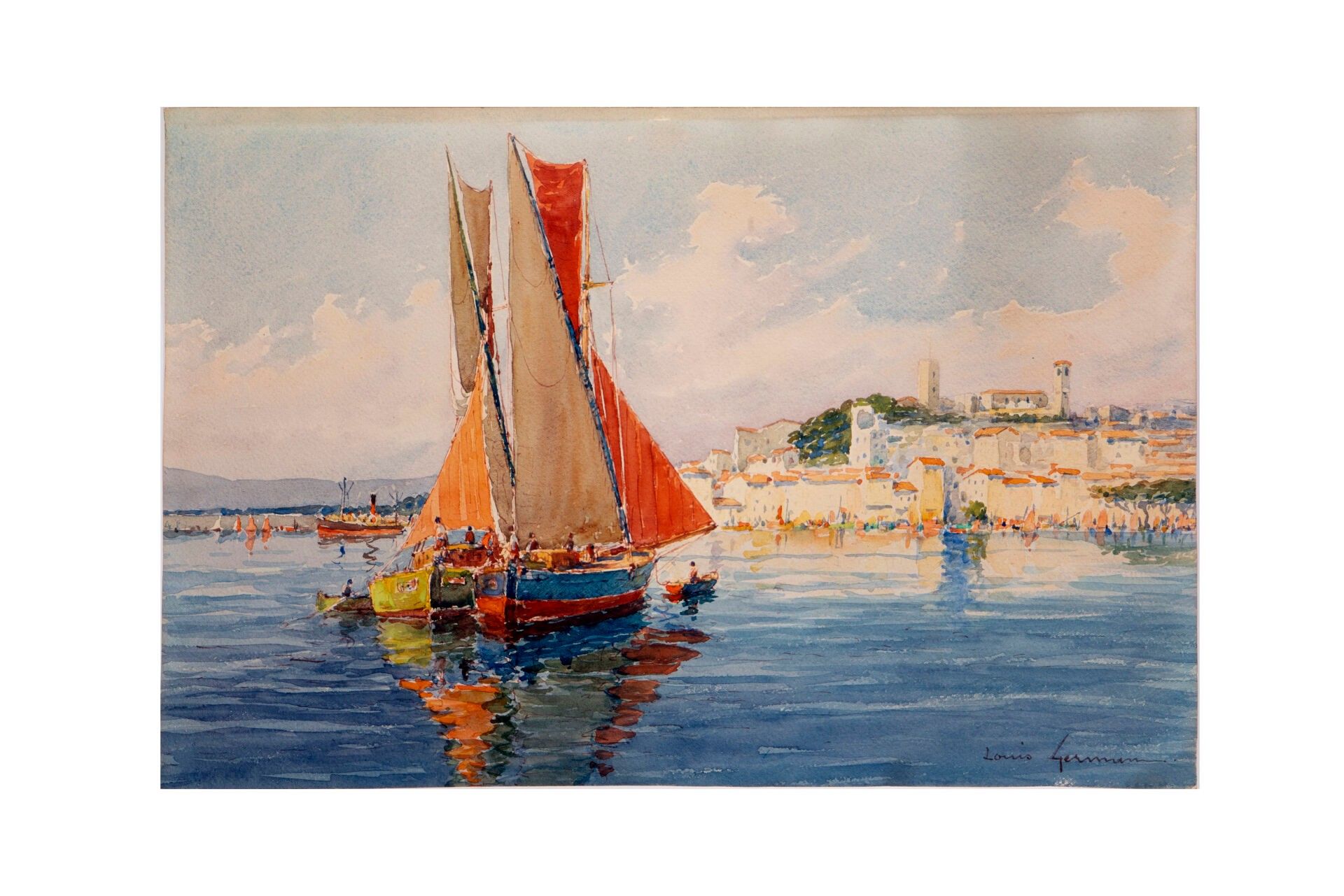 Louis GERMAN (1863-1946) Vue de voiliers près du port.