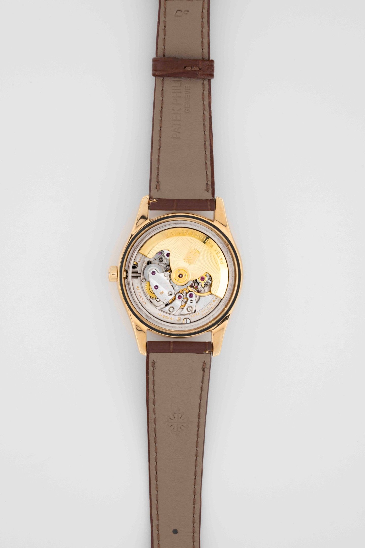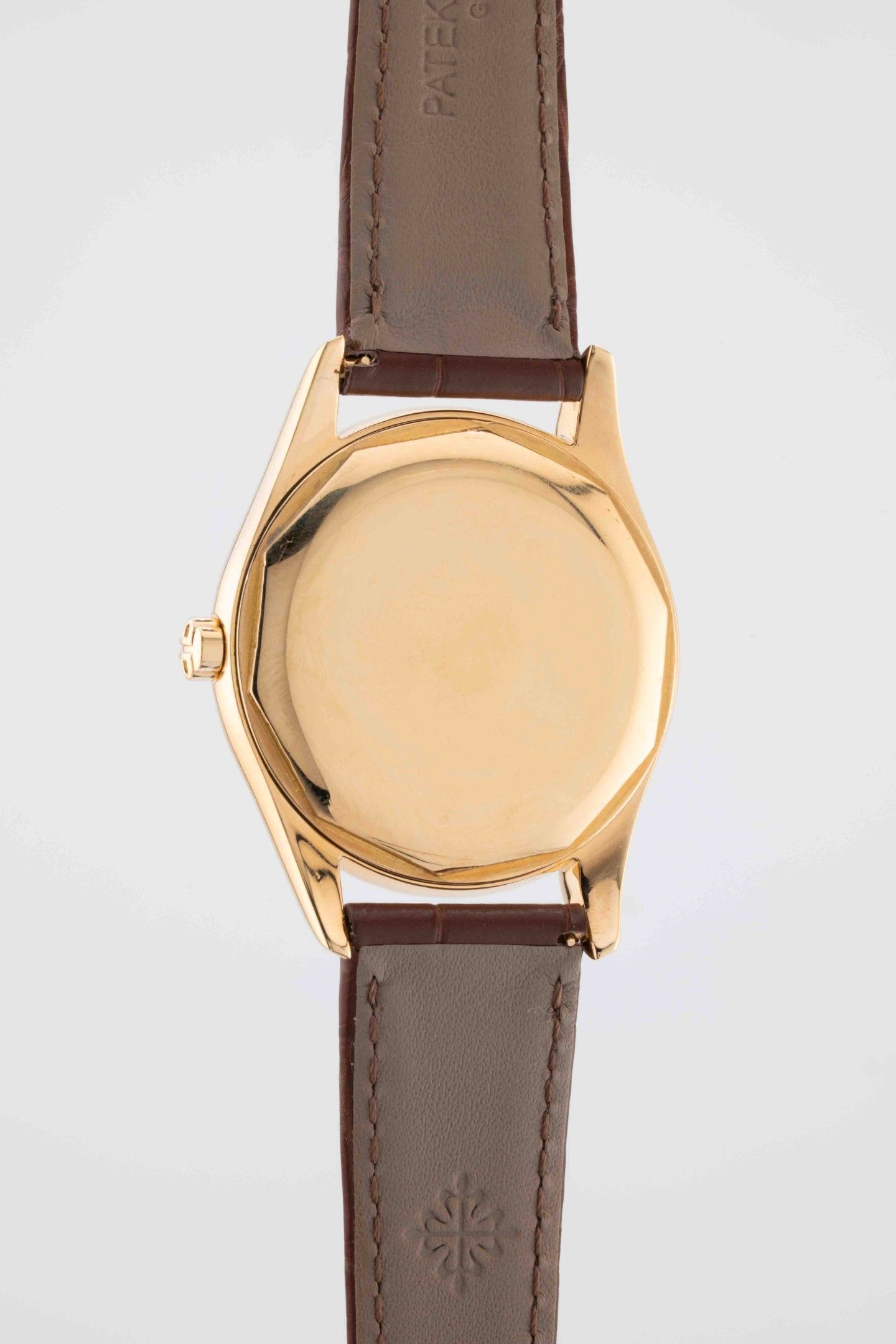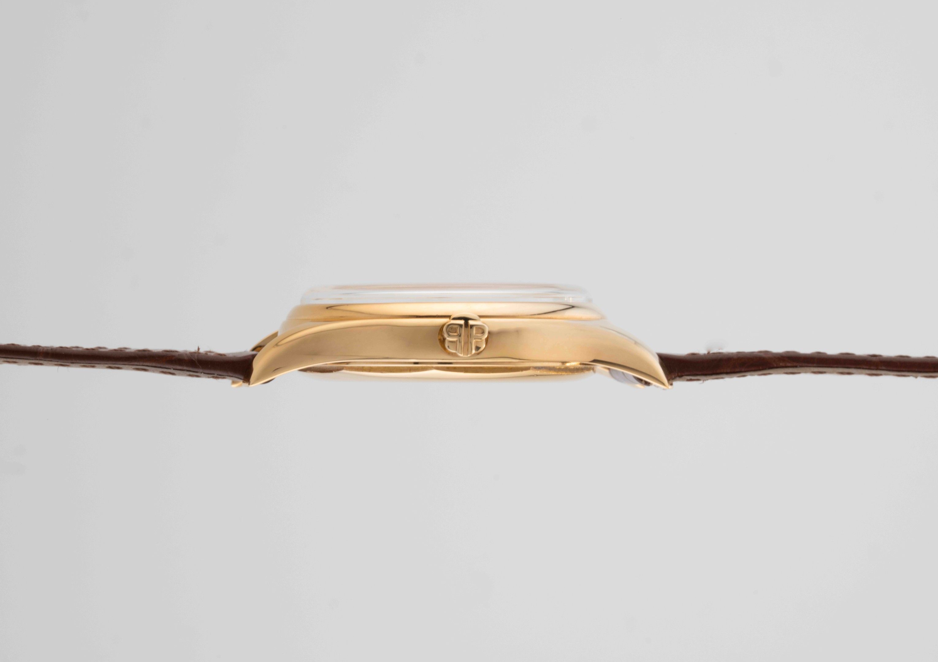Boîtier : rond or jaune 750/1000, lunette lisse, remontoir signé PP, fond vissé à pans.