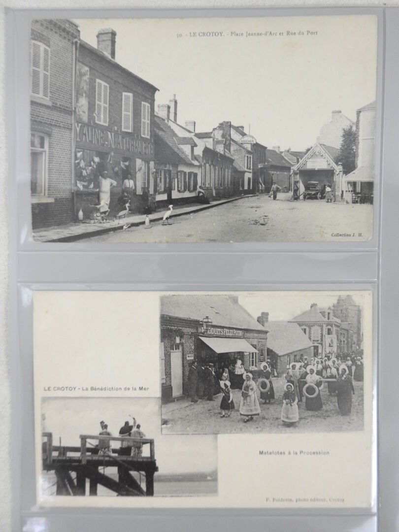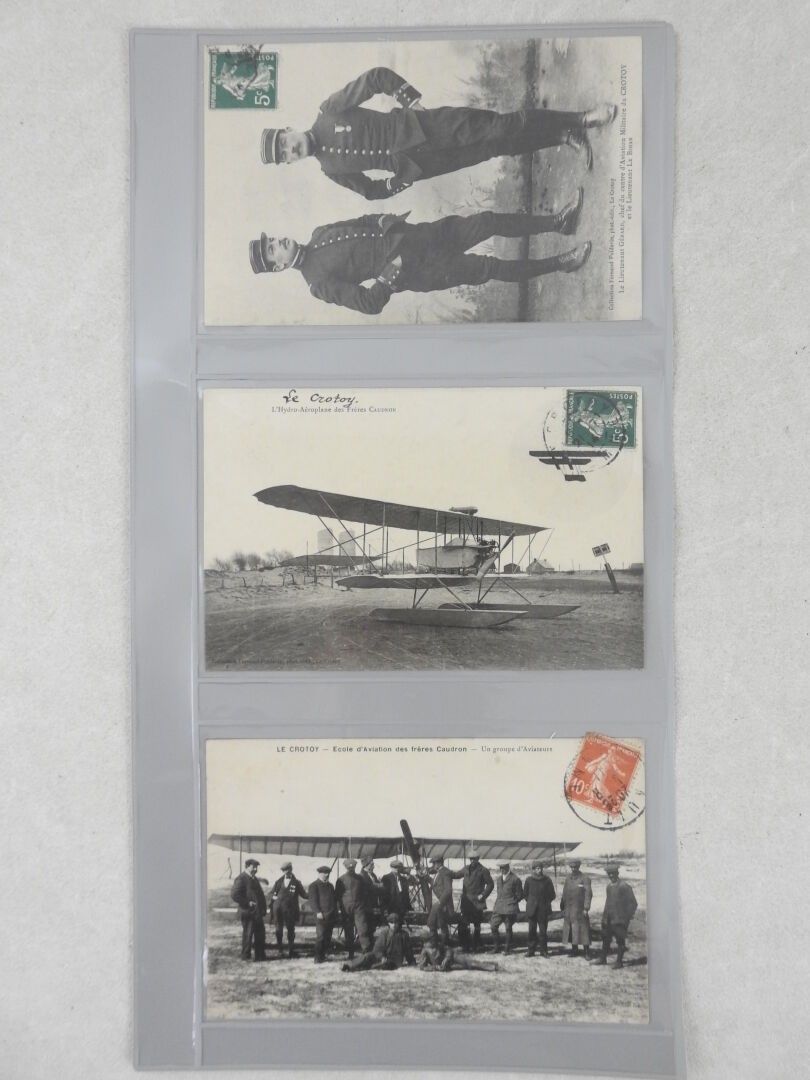 Le Crotoy : école d'aviation des frères Caudron, hydro-aéroplane des frères Caudron, lieutenants Gérard et Le Bihan, vues de village.