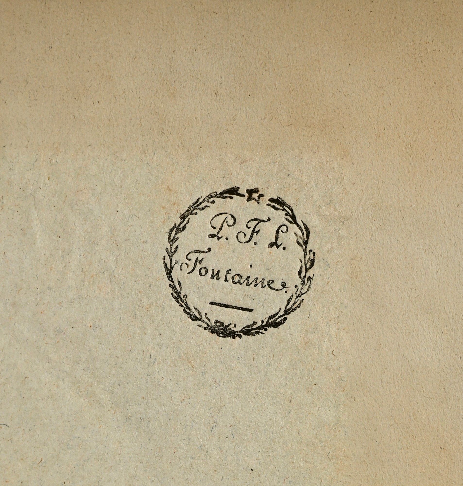 De la bibliothèque de l'architecte Pierre François Léonard Fontaine, avec timbre humide en page de garde.