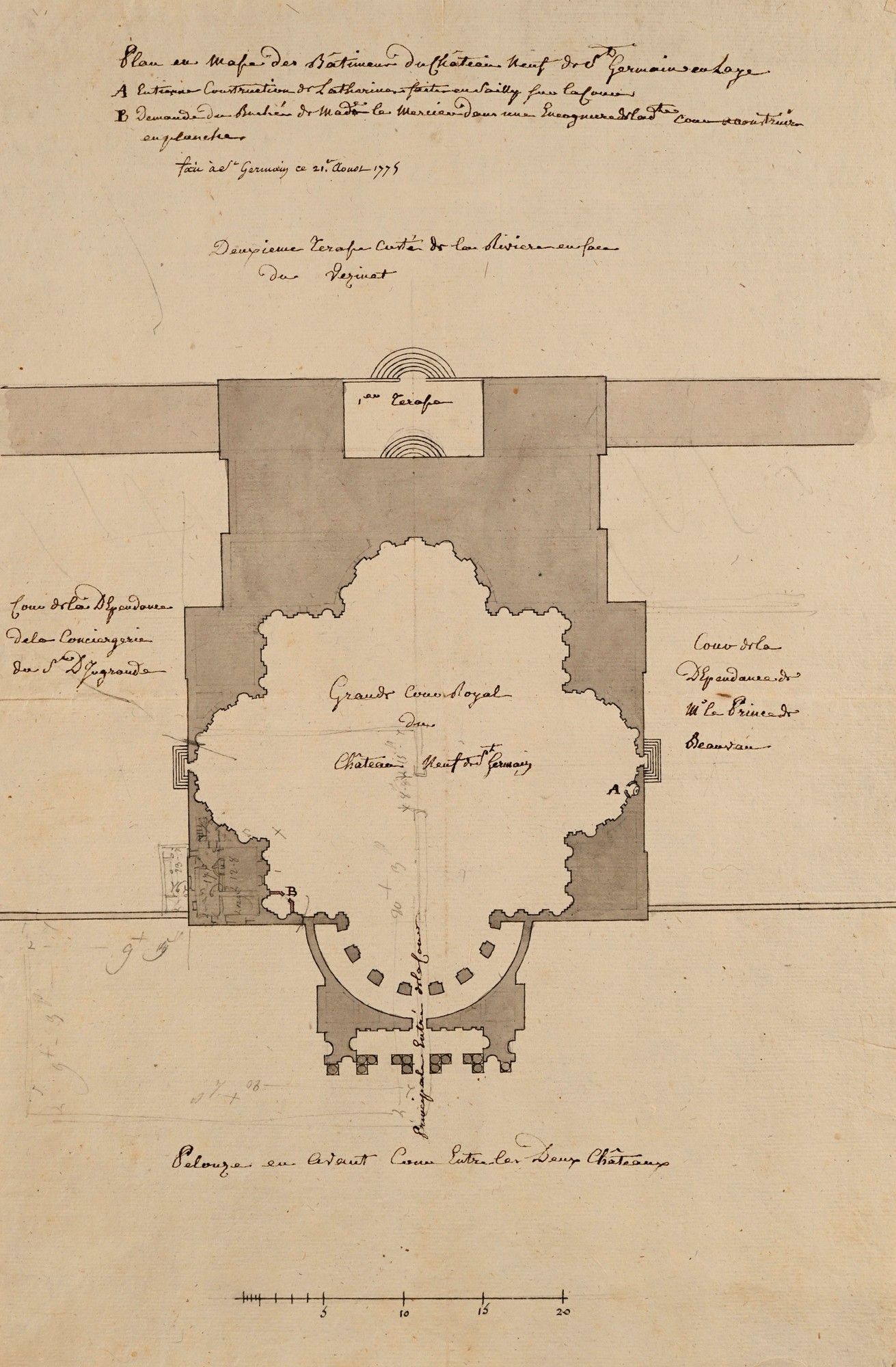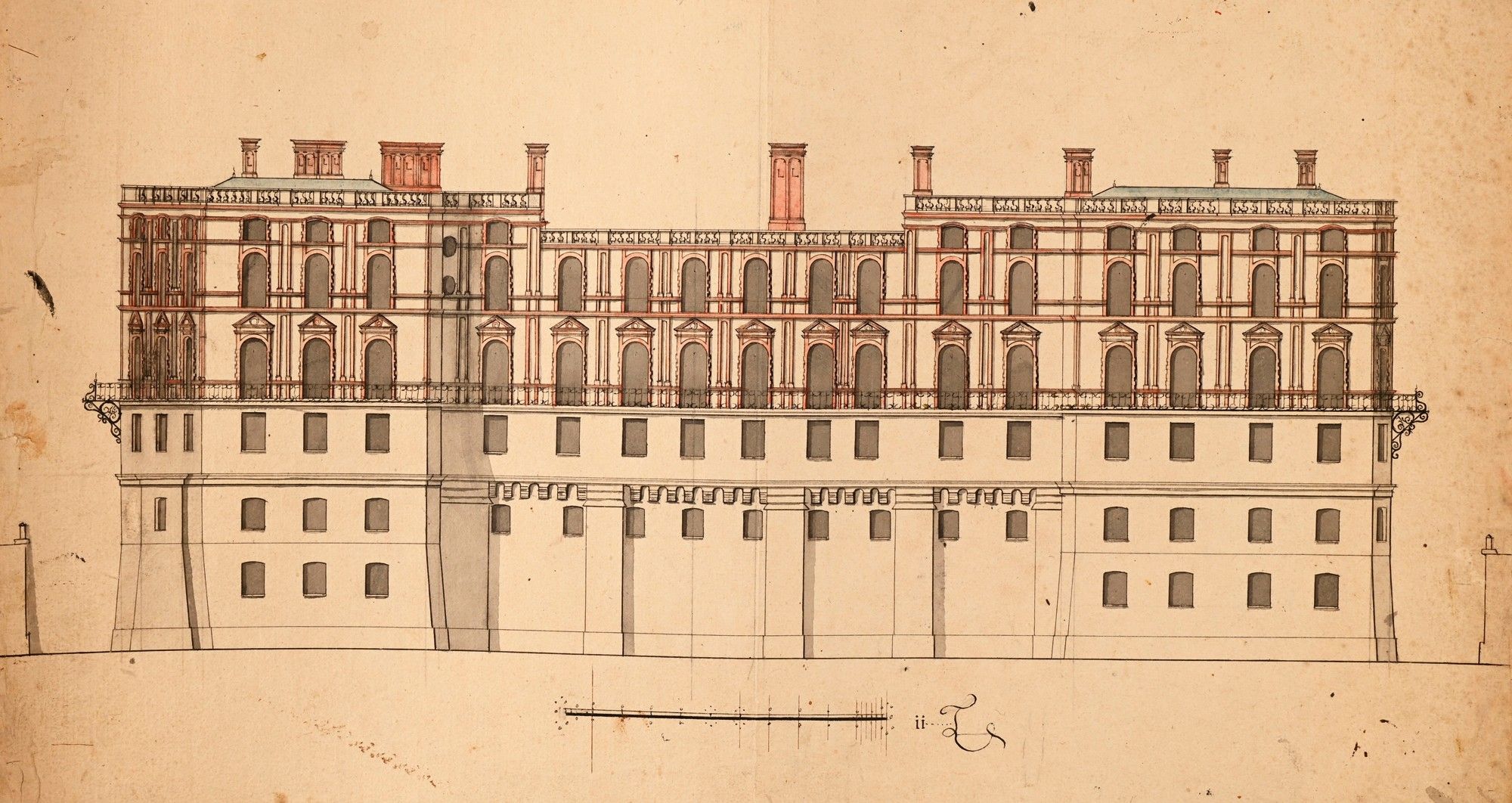 Plans et documents d'études du château de Saint Germain en Laye et relevés d'une élévation