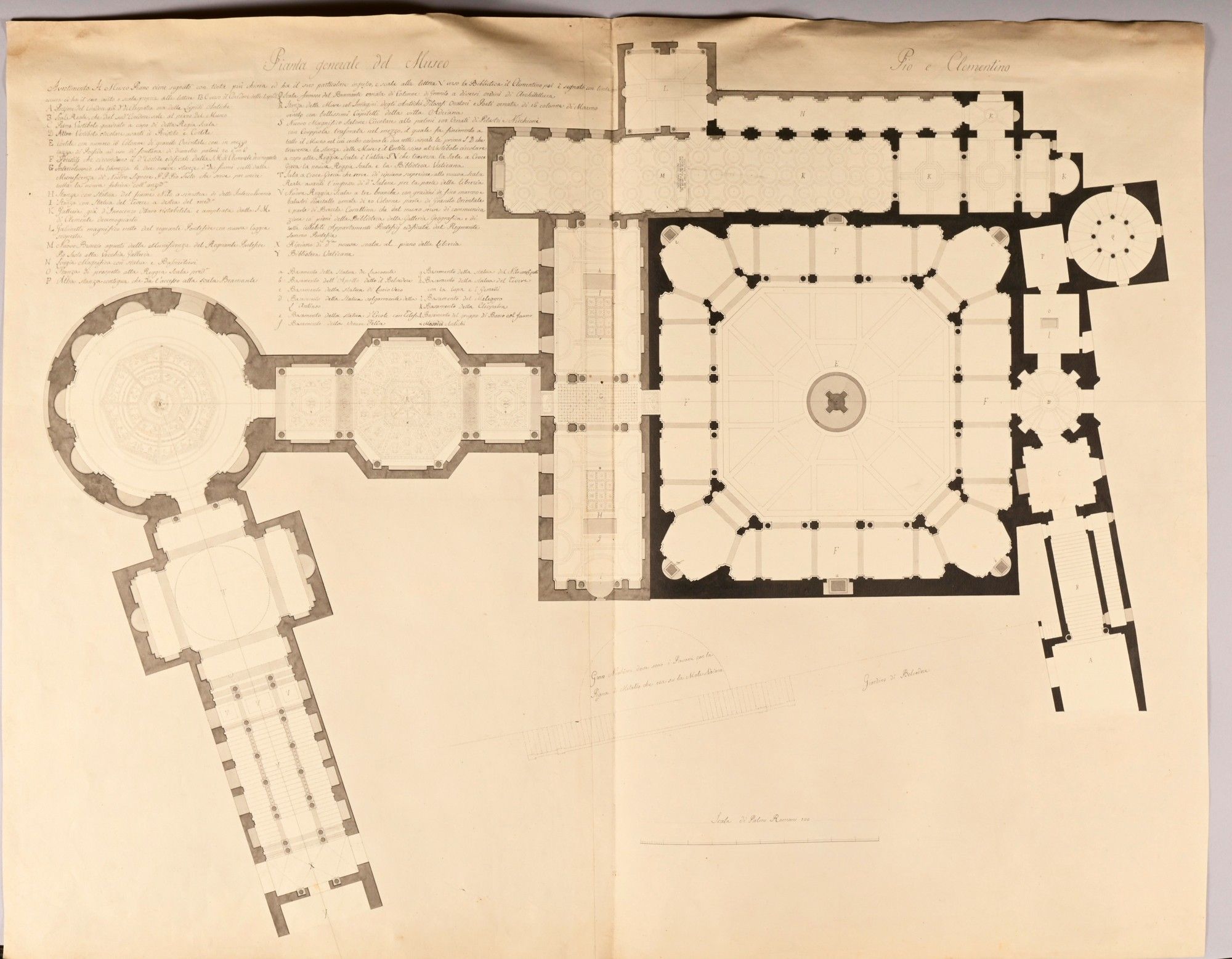 Plan de la galerie et du vestibule en rotonde du musée Pio Clementino du Vatican