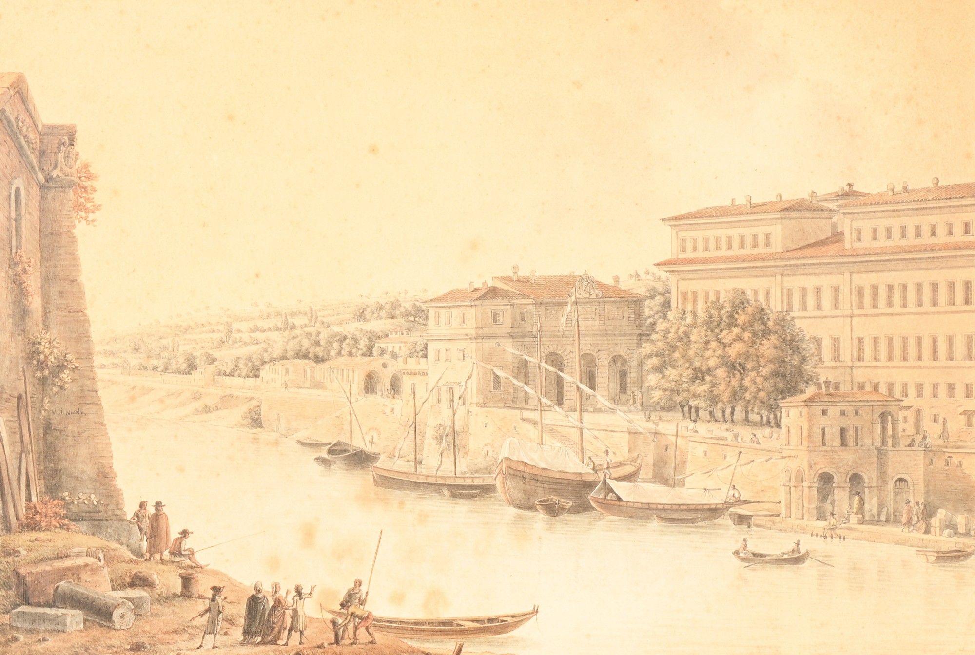 Pêcheurs et promeneurs sur les bords du Tibre, port de Ripa Grande