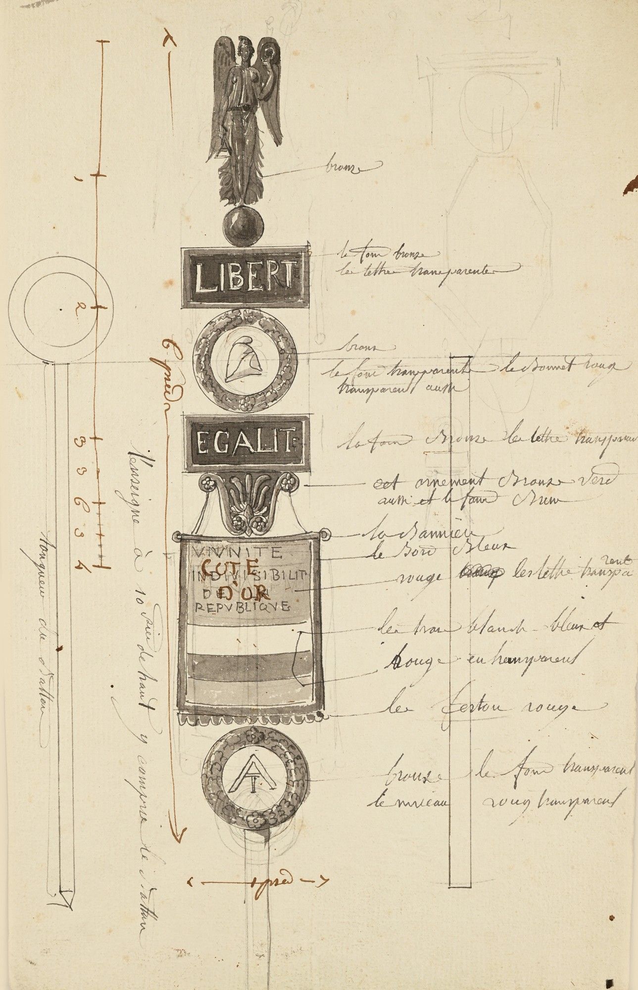 Projet de haut de mât pour la Côte d'Or portant les inscriptions LIBERTÉ et ÉGALITÉ, surmonté d'une Victoire