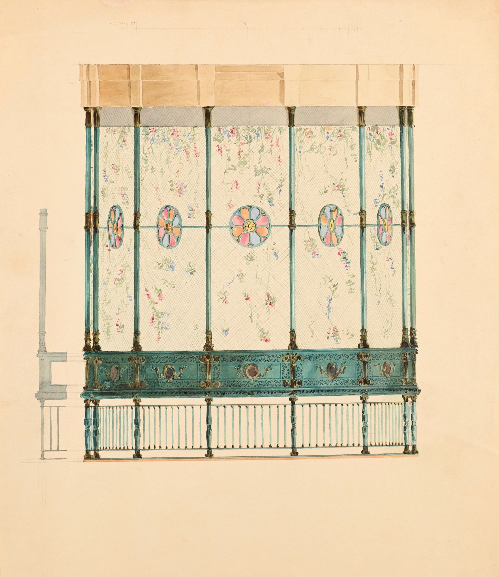 Au verso, Esquisse pour un décor de kiosque, pierre noire.