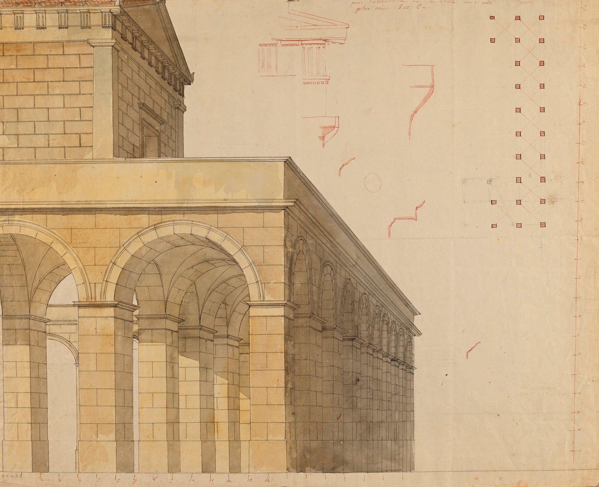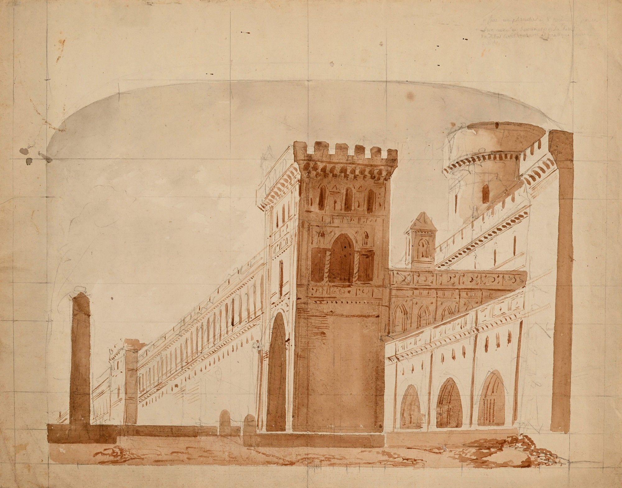Attribué à PERCIER et FONTAINE Projet de décor aux arcades pour l'Enthousiasme de la Liberté, pièce en un acte ...