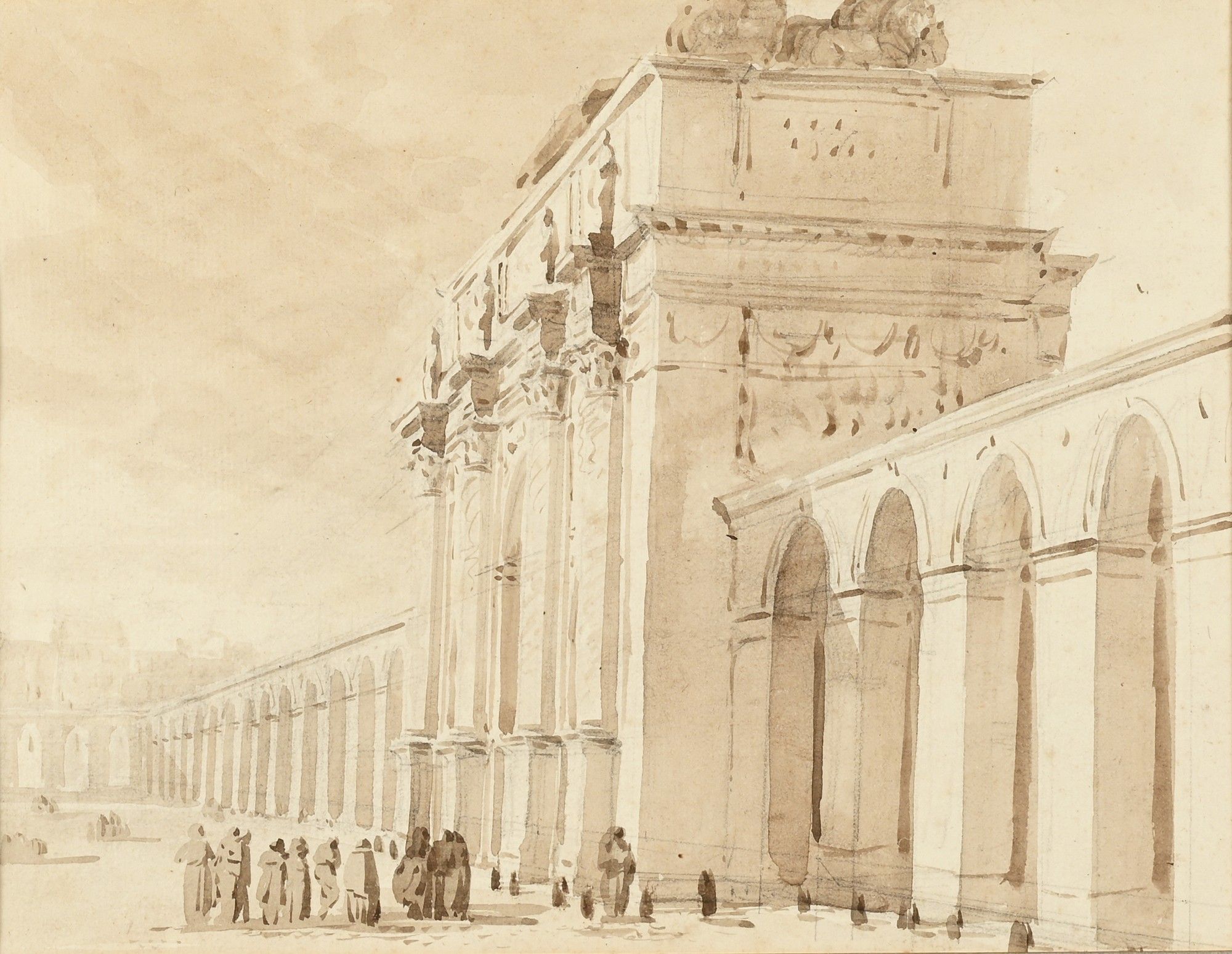 Pierre FONTAINE Promeneurs près de l'Arc du Carrousel Lavis …