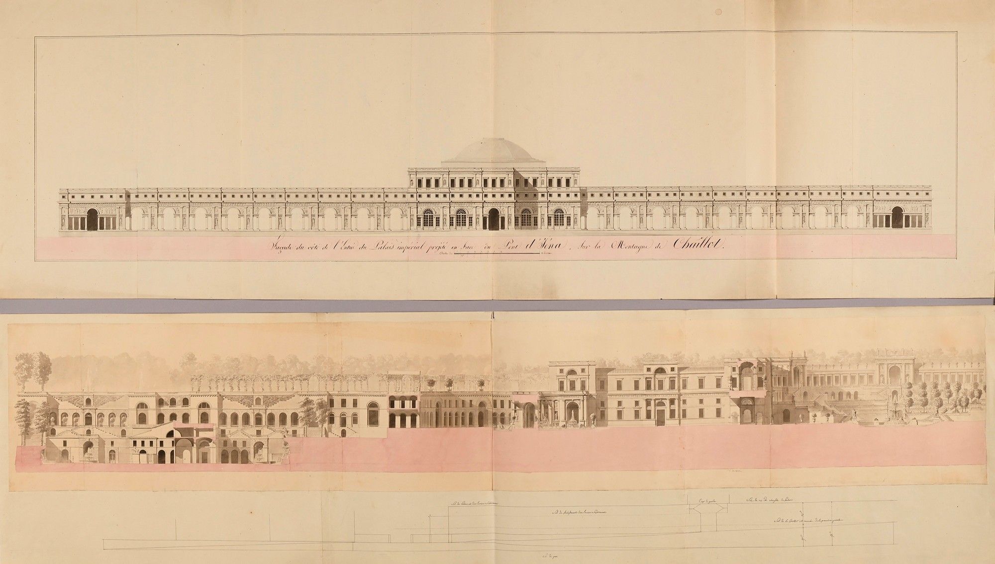 Palais du Roi de Rome , projet de façade du côté de l'entrée du palais impérial en face du pont d'Iéna, sur la montagne de Chaillot