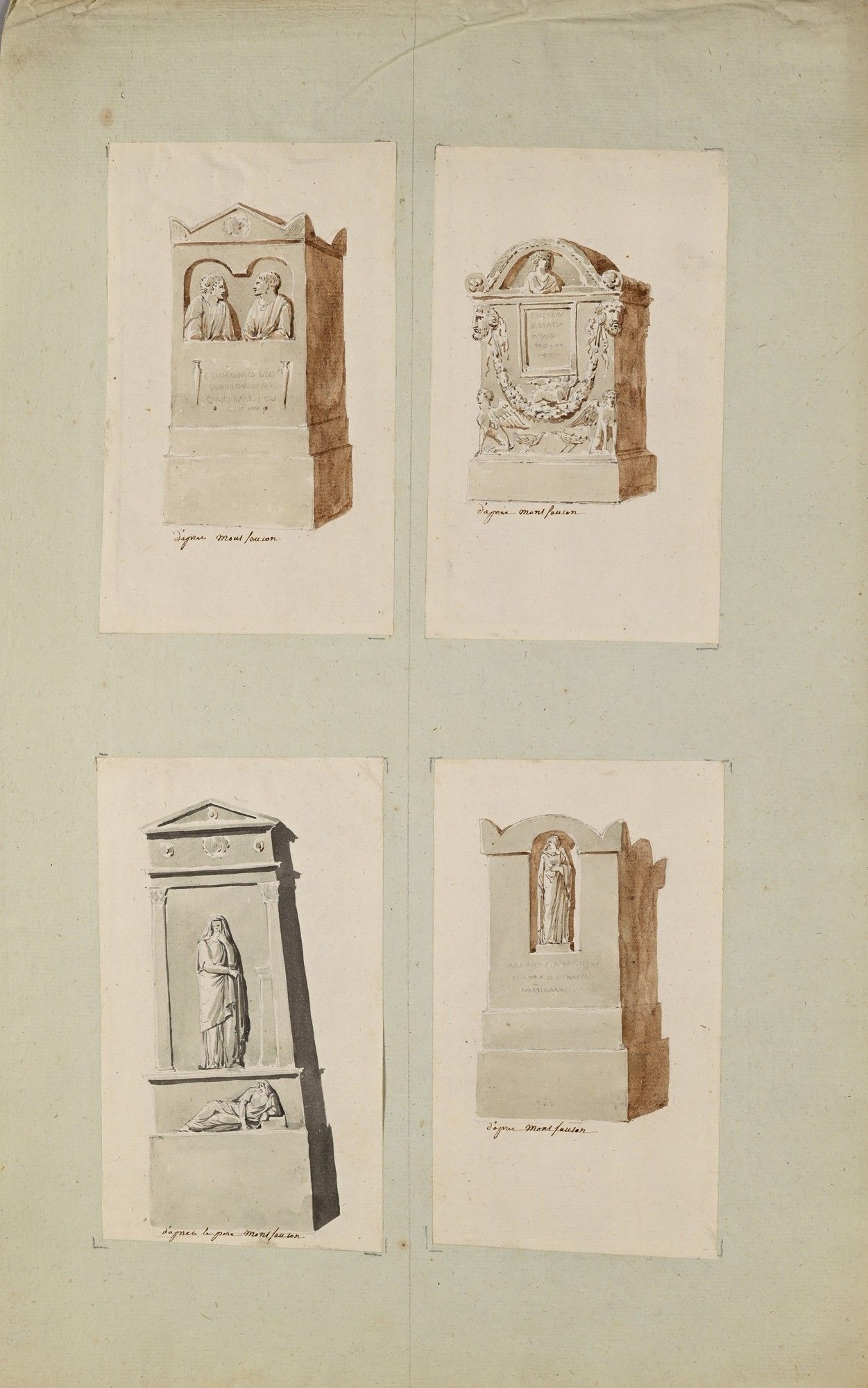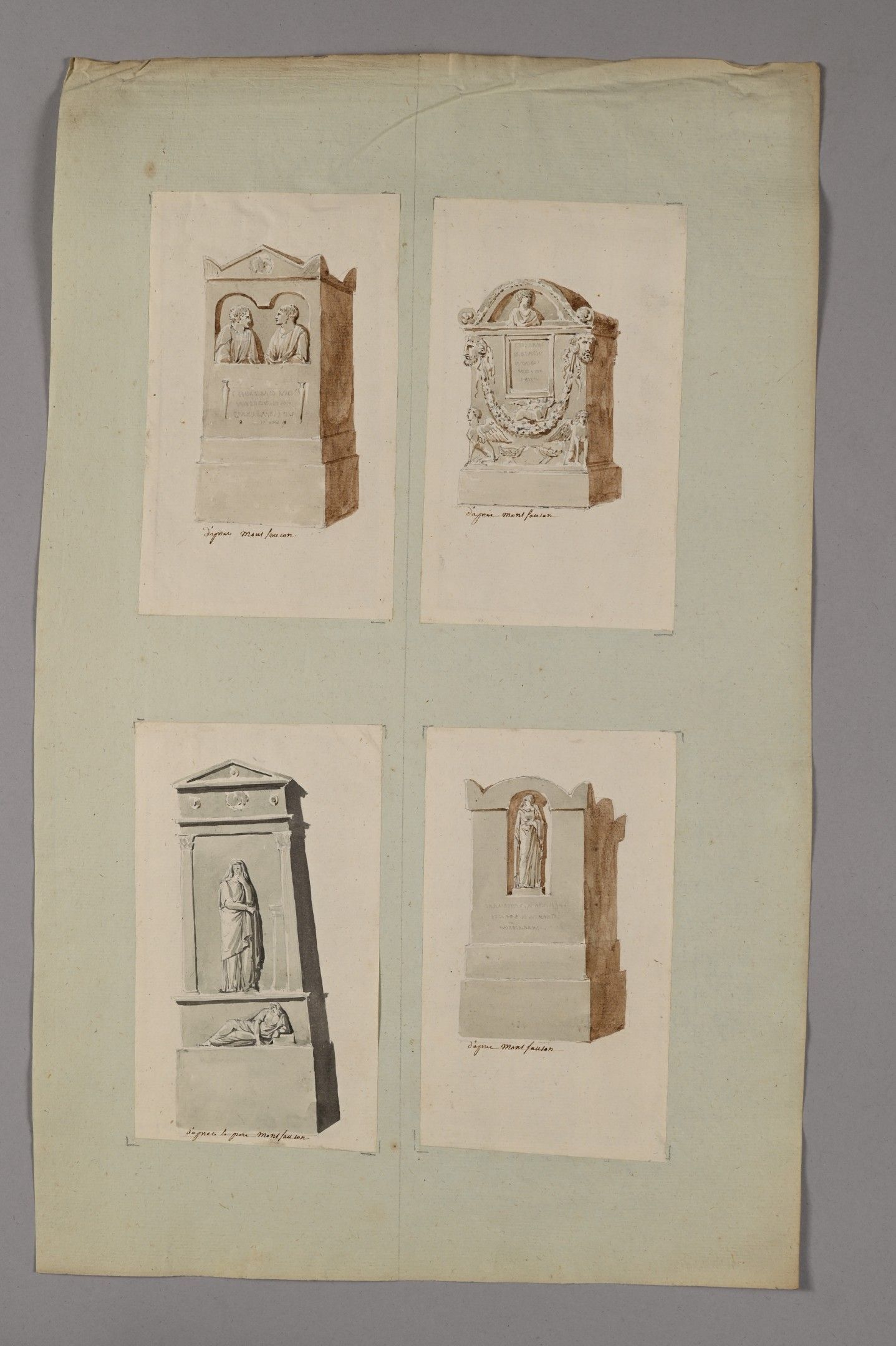 Quatre études de tombeaux d'après l'ouvrage du père Bernard de Montfaucon