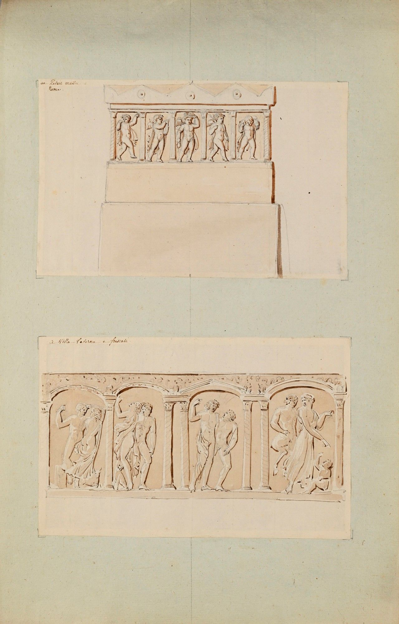 Deux études d'après des frises du Palais Mattei à Rome et de la Villa Taverna à Frascati
