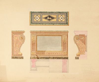 Charles PERCIER Projet de console, le plateau en marqueterie…